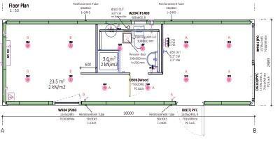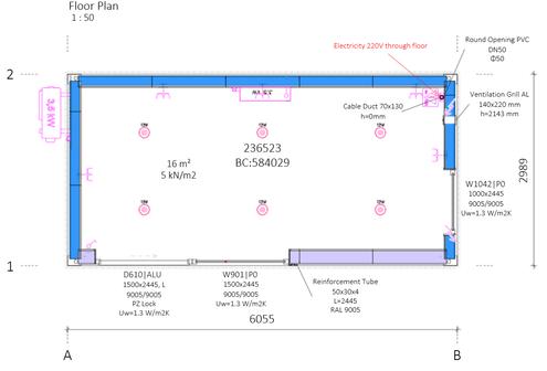Le plancher de nos units est conçu pour résister sans difficulté aux charges et à l’usure. En fonction de l’usage, la composition du sol peut être adaptée à des charges variées, allant d’applications de bureaux légères à des usages industriels intensifs.