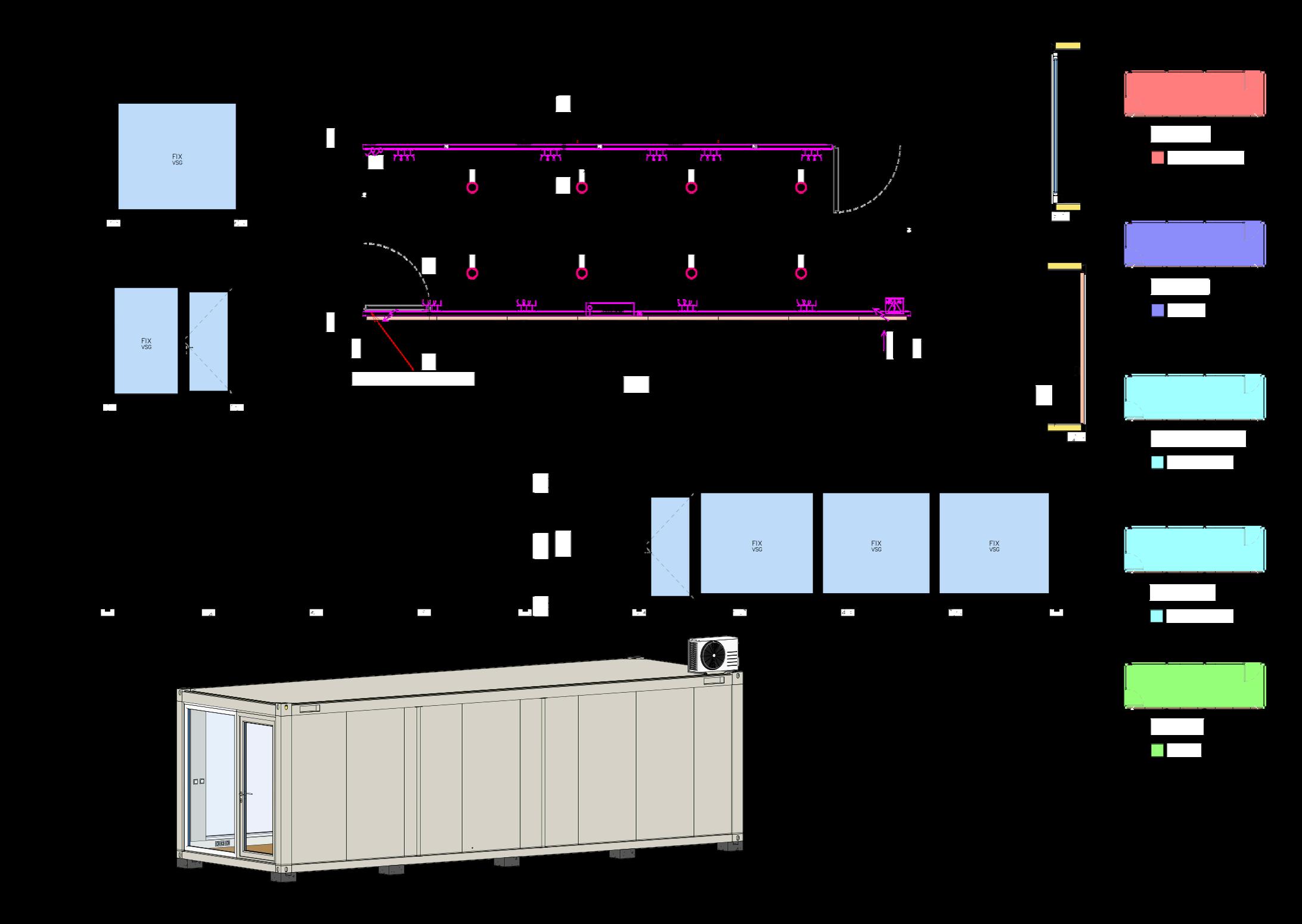 Grâce à notre production et à nos transformations réalisées en interne, les units de location peuvent être adaptées à l’usage souhaité, avec des options telles que l’isolation, l’électricité, le sanitaire, le chauffage, la climatisation et les finitions intérieures. Les units peuvent être placées individuellement, assemblées ou empilées selon les besoins du projet.