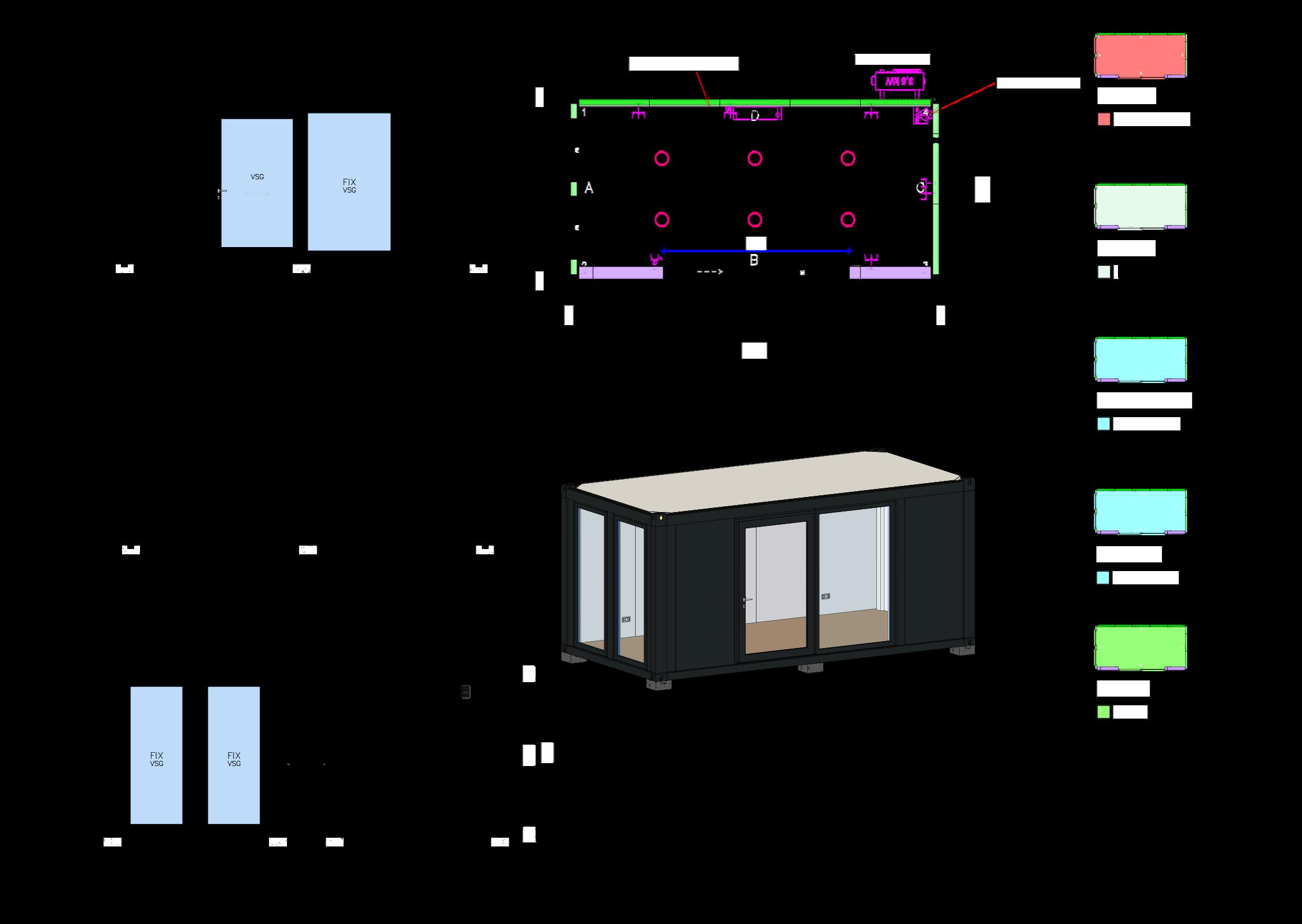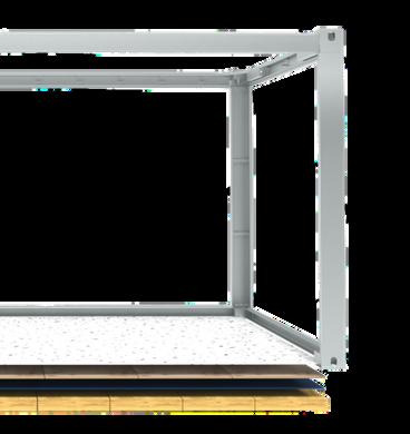 Les units DS Units sont conçues sur la base d’une structure métallique soigneusement étudiée, garantissant stabilité, durabilité et flexibilité. Chaque unit est développée comme un portique métallique rigide à deux axes, assurant une structure de base solide et résistante.