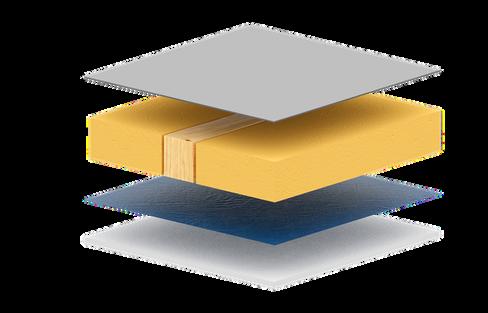 Le plafond de nos units remplit une double fonction. En plus de constituer la couche d’isolation supérieure, il agit également comme toiture principale, garantissant une excellente étanchéité et une protection optimale contre les intempéries. La couche extérieure est composée d’une tôle d’acier revêtue de 0,7 mm d’épaisseur, posée avec une pente afin d’assurer une évacuation optimale de l’eau et une protection renforcée contre la pluie, le vent et la neige. L’isolation thermique du plafond peut être adaptée de manière flexible aux valeurs U requises, grâce à l’utilisation de différentes épaisseurs et types de matériaux isolants. 1.