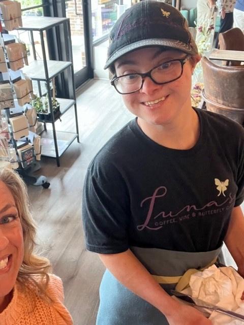 When I was in my early 20s, I was in college and started thinking about my future and wanting to get a job after graduating. That’s when I found Luna’s and started working there. When I first started working at Luna’s and got to know the owners, Alison and Web, they felt like family. They took me in and made me feel loved and cared for. Luna’s is my safe space I feel free and safe to be myself there, and I always feel welcome Working at Luna’s is the best of both worlds because I love coffee, and the drinks they serve there. Butterflies are also my favorite insect, so working at a butterfly café is fun.