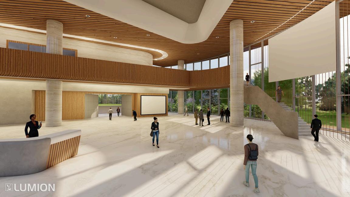Design of virtual corporate events, including lobbies, stands, halls, and auditoriums. High quality renders