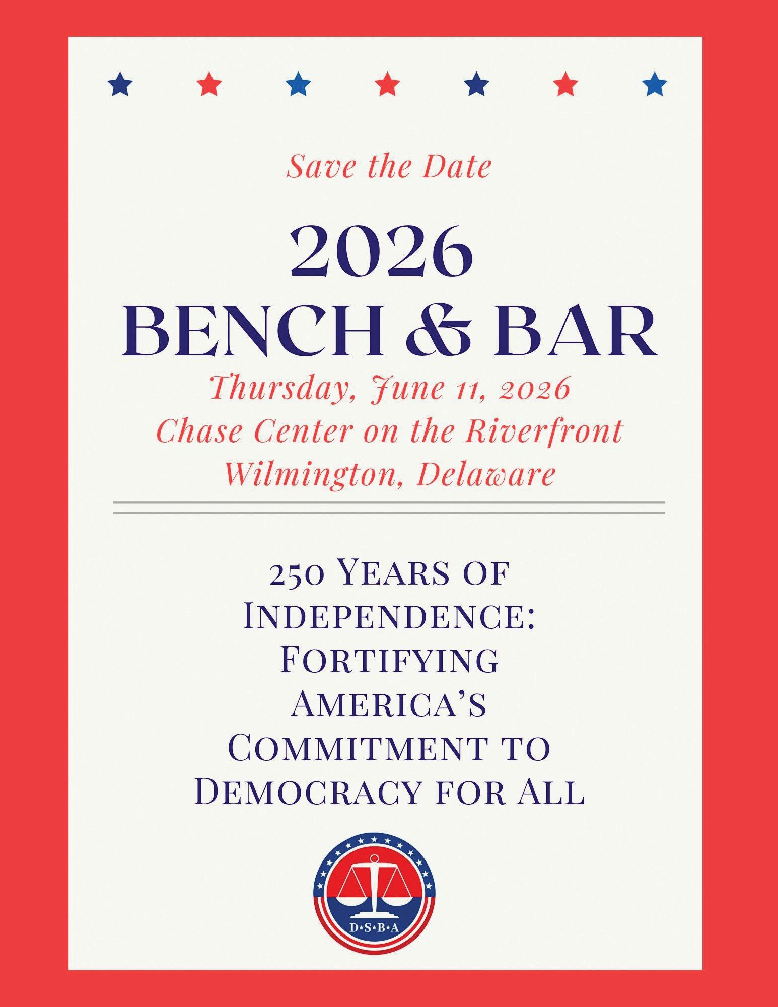 In times of change and challenge, the rule of law endures when we, as Delaware lawyers and judges, choose to defend it through our conduct and advocacy. On Law Day 2026, and every day, let that choice guide our work. I look forward to seeing you at the Law Day Luncheon at the Riverfront Events Center on Friday, May 1, 2026.