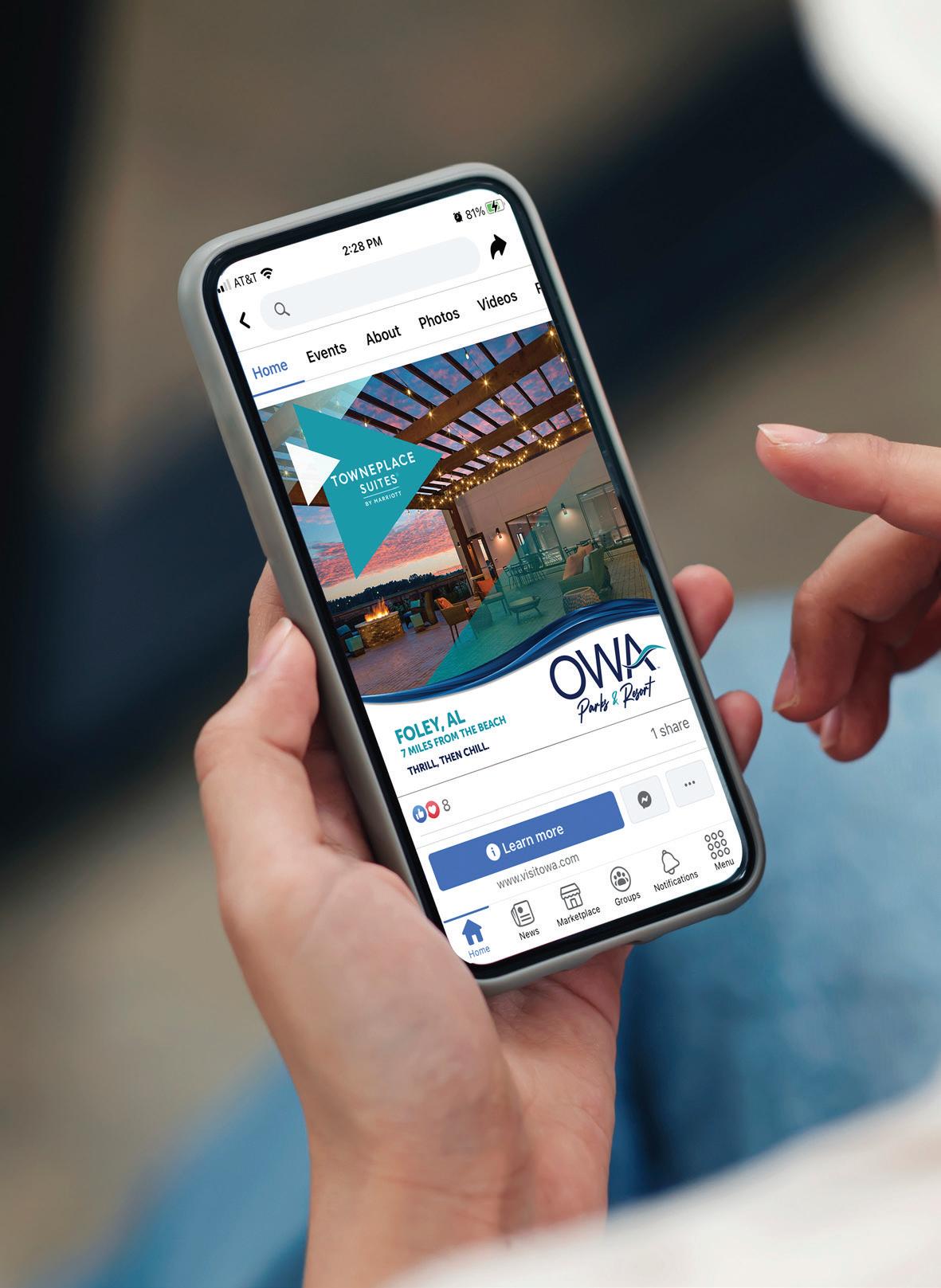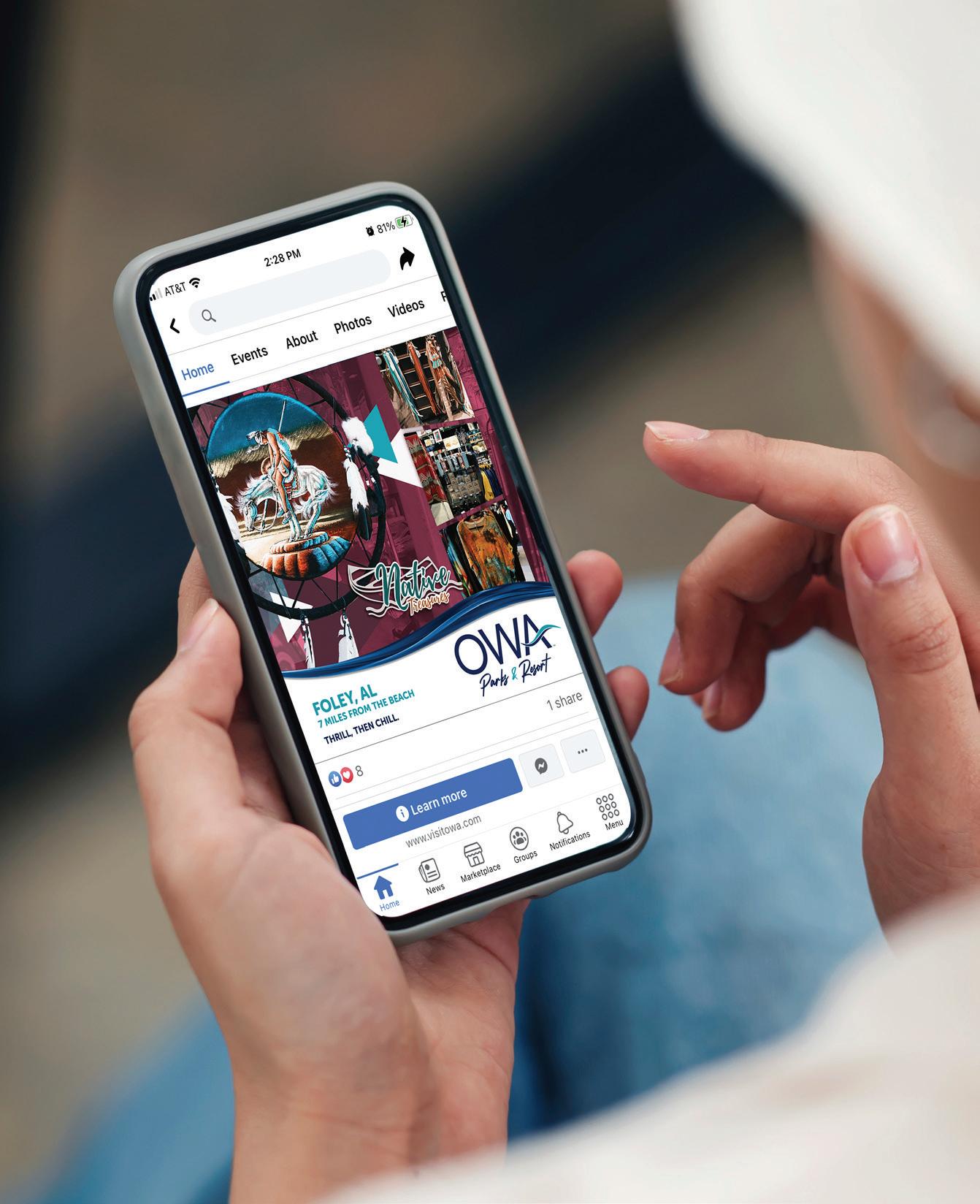 The Downtown OWA brand expanded to include three facets of the admission-freeexperience: shopping, dining and entertainment. Continuity of the branded experience has been maintained from the consumer’s first encounter via print and digital ads to outdoor and on-property messaging.