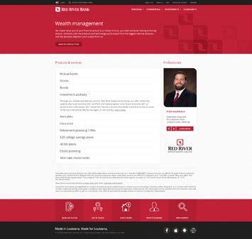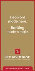 That’s how many people moved to Red River Bank last year alone. Some follow their trusted bankers who’ve recently joined us. Others find better advice and faster mortgage solutions. And commercial banking? Businesses come here because nobody knows how a Louisiana business can thrive better than one who’s thriving here every day. redriverbank.net - 318.561.4000 SECTION 2 : ADVERTISING - COMMERCIAL 15
