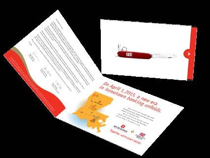 6. COMMUNITY OUTREACH Ice Cream Truck ................................................................................................. 58 Mortgage Thank You ......................................................................................... 59 Customer Appreciation Event ........................................................................... 61 Employee Picnic Shirts ....................................................................................... 63 Dragon Boat Shirts ............................................................................................. 64 Christmas Cards ................................................................................................. 65 Financial Seminars ............................................................................................. 67 Community Sponsor Banners ........................................................................... 70 Community Development ................................................................................. 71 Private Banking ................................................................................................... 72 7. GRAND OPENINGS Grand Openings ................................................................................................. 74 8. PLASTICS Consumer Credit & Debit Card ....................................................................... 78 Business Credit & Debit Card .......................................................................... 81 Health Savings / Corportate Credit & Debit Card ........................................ 84 Private Banking Credit & Debit Card ............................................................. 86 9. ANNUAL / QUARTERLY REPORT Annual Report .................................................................................................... 90 Quarterly Report ................................................................................................ 92 10. EMPLOYEE MESSAGES Employee Messages ............................................................................................ 95 1. MERGERS & ACQUISITIONS Conversion .............................................................................................. 2 Conversion Kit ....................................................................................... 4 Welcome Book ....................................................................................... 6 Mergers .................................................................................................... 8 2. ADVERTISING Retail ....................................................................................................... 10 Commercial ............................................................................................ 15 Investments ............................................................................................. 18 Mortgage ................................................................................................. 20 Private Banking ...................................................................................... 24 TV Spots ................................................................................................. 25 3. WEB & DIGITAL Website .................................................................................................... 28 E-Blasts ................................................................................................... 31 Social Media ........................................................................................... 33 4. IN BRANCH MARKETING Mobile Banking ..................................................................................... 36 Financial Tips Campaign ...................................................................... 39 ATM Wrap ............................................................................................. 41 Mortgage ................................................................................................. 42 Dreambuilder Account .......................................................................... 44 Investments Campaign .......................................................................... 47 5. BROCHURES & COLLATERAL Commercial Brochure ........................................................................... 50 Personal Brochure .................................................................................. 53 Investments Brochure ............................................................................ 54 Private Banking Brochure ..................................................................... 55 Table of ConTenTS /////////