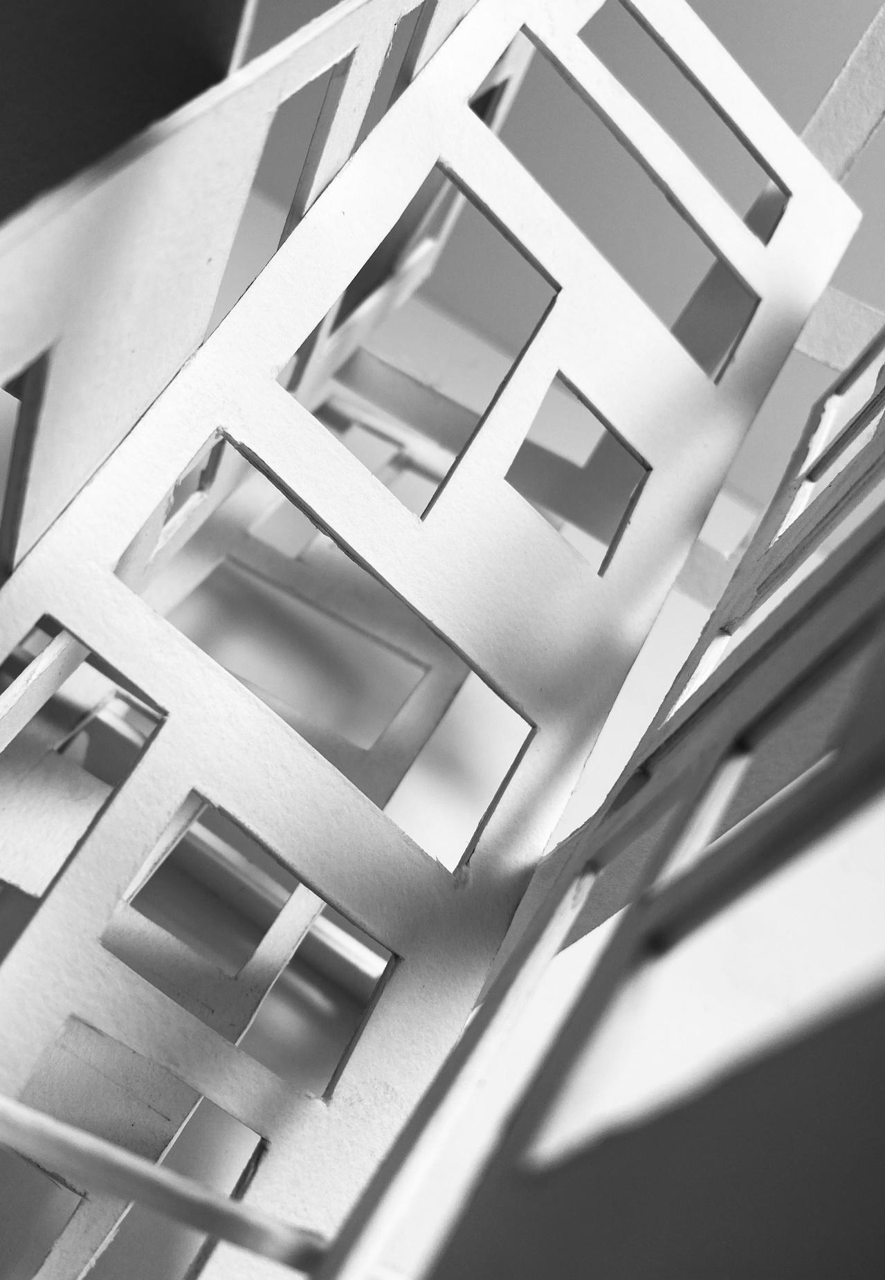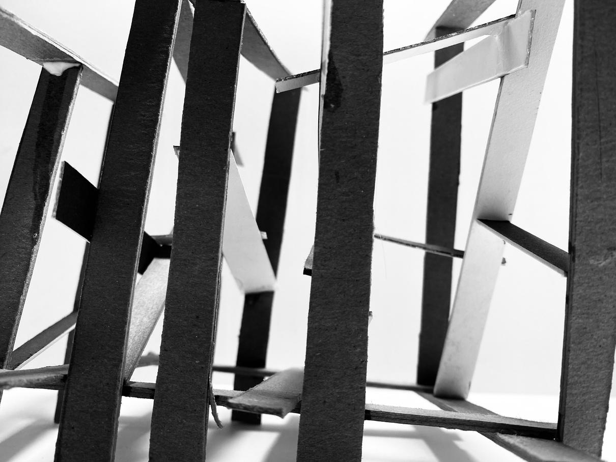 The goal of this project was to explore and then create and capture certain qualities of light within a space. Through the observation and development of various lighting conditions via light studies and study models, a central theme of the evolution from light to dark arose. This idea was further enhanced in the final model as the structure of the model itself progresses from a condition of “fullness” into a condition of openness, thus creating an internal striated shadow effect.