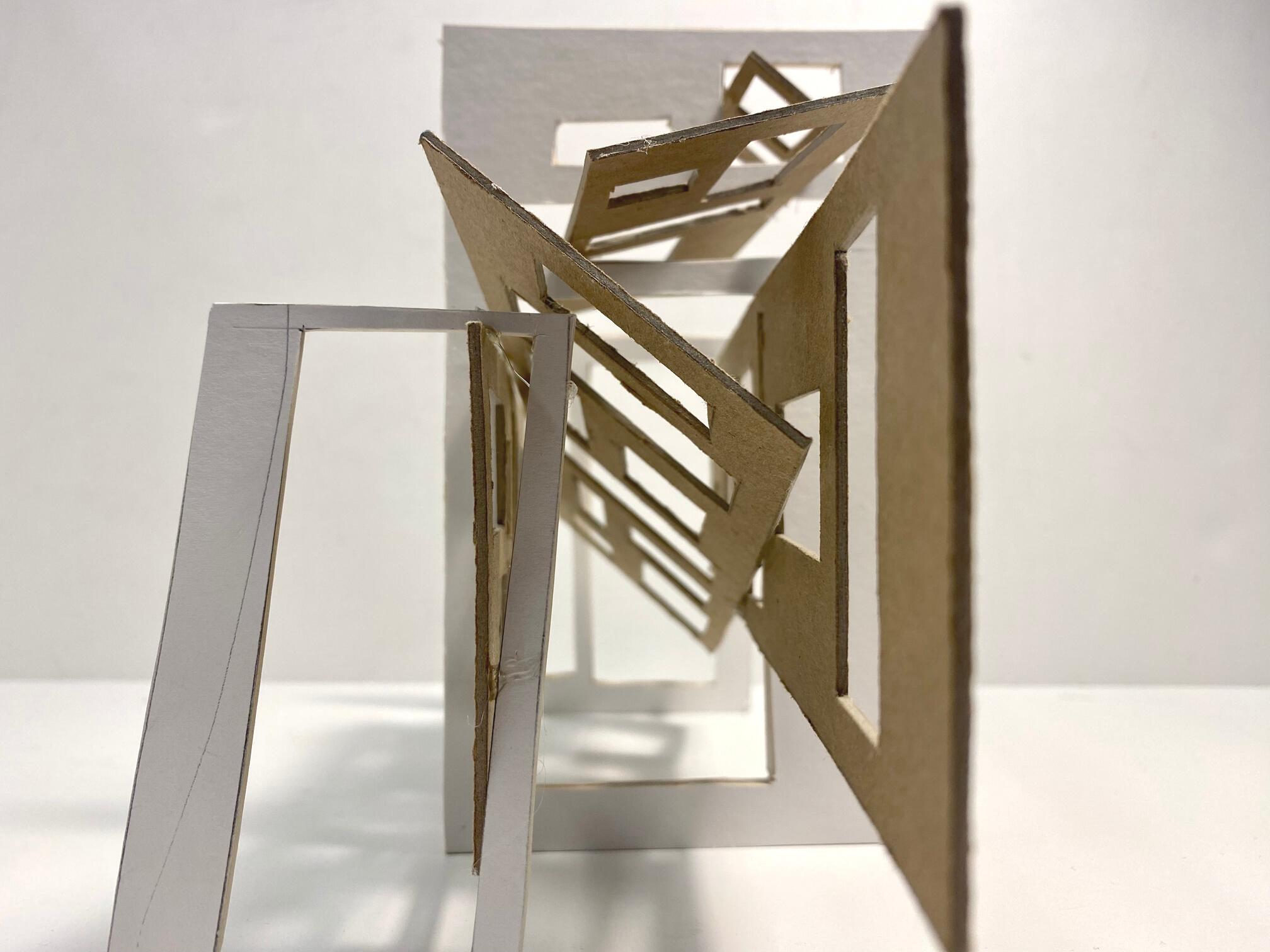 The objective of this project was to bring a given art piece to life through a variety of methods including reproductions, improvisations, and finally, a 3D model to represent the composition. The piece that acted as the basis of this project was Structures #11 by Lisa Call. From this painting, various interpretations were derived, each focusing on different characteristics of the painting that could be further enhanced or manipulated. A major point of focus throughout this process was that of the heirarchal relationships between rectangles observed in various areas of the composition as well as the role of color.