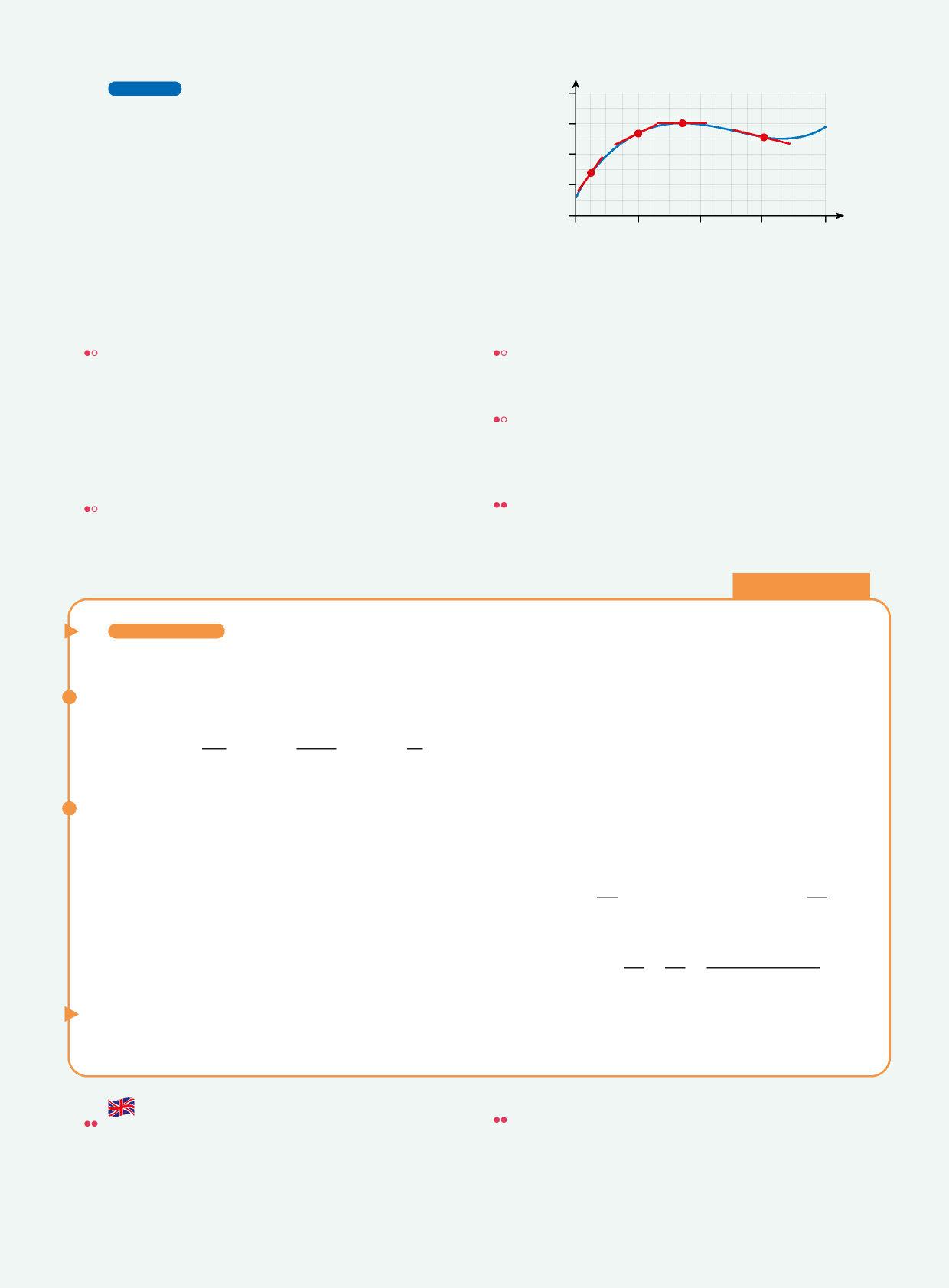 • In verticale il moto è uniformemente accelerato. La direzione del vettore velocità, ! v , cambia continuamente, perché cambia la sua componente verticale: durante la salita v y si riduce 1 , nel punto più alto della traiettoria è uguale a zero e il vettore ! v è orizzontale 2 ; da quel momento in poi v y è negativa e la palla è nella sua fase di discesa 3 .