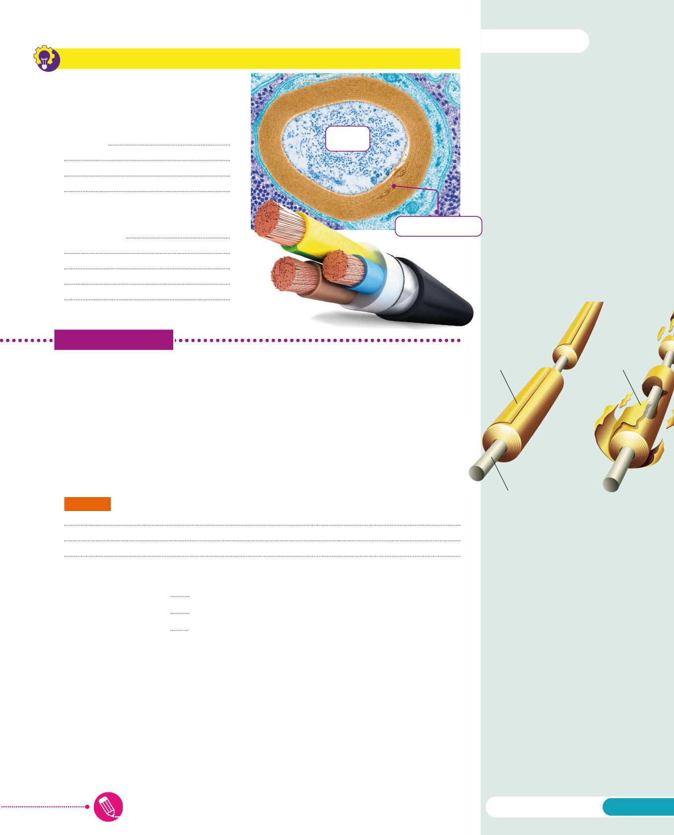 Guarda L’immagine a fianco rappresenta un assone in sezione. Rifletti Che cos’è un assone e a che cosa serve la guaina mielinica? Ipotizza Secondo te, ci sono analogie con i fili elettrici nella foto a lato? Quali?