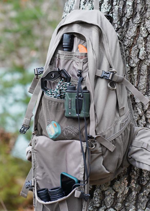 This backpack is equipped with a built in treestand shelf, hideaway safety orange rain fly, & tons of storage pockets. This will be your new go-to bag!