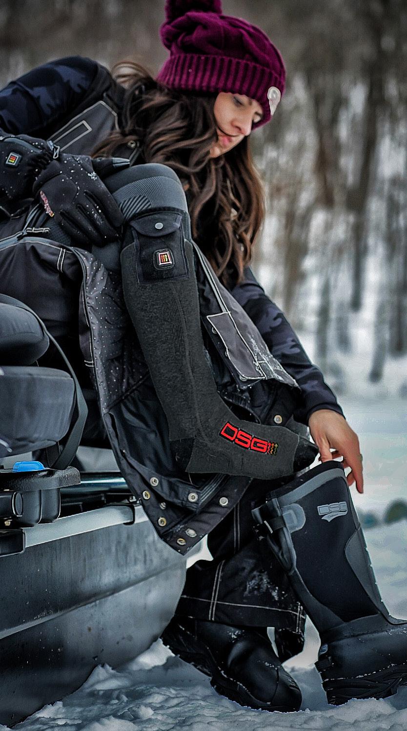These wool blend socks come with two super powerful ActionHeat 5V Power Banks (3000mAh). The thin profile batteries fit into a small snap pocket. These heated socks warm from the bottom up with lightweight, flexible panels so you can feel warmth where you need it most.