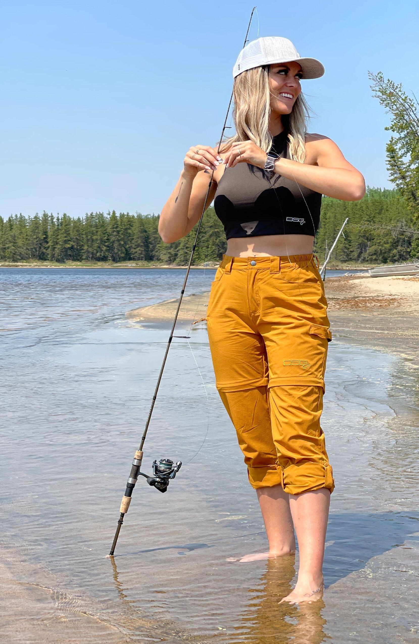 The 3-in-1 Zip Off Pant is the perfect companion to any fishing trip. These pants are made of moisture wicking ripstop fabric and can be worn three different ways: as pants, snapped up as capris, or zipped off as shorts. Sizes 2-16. AvailableinFawn(pictured)andSlate Available in