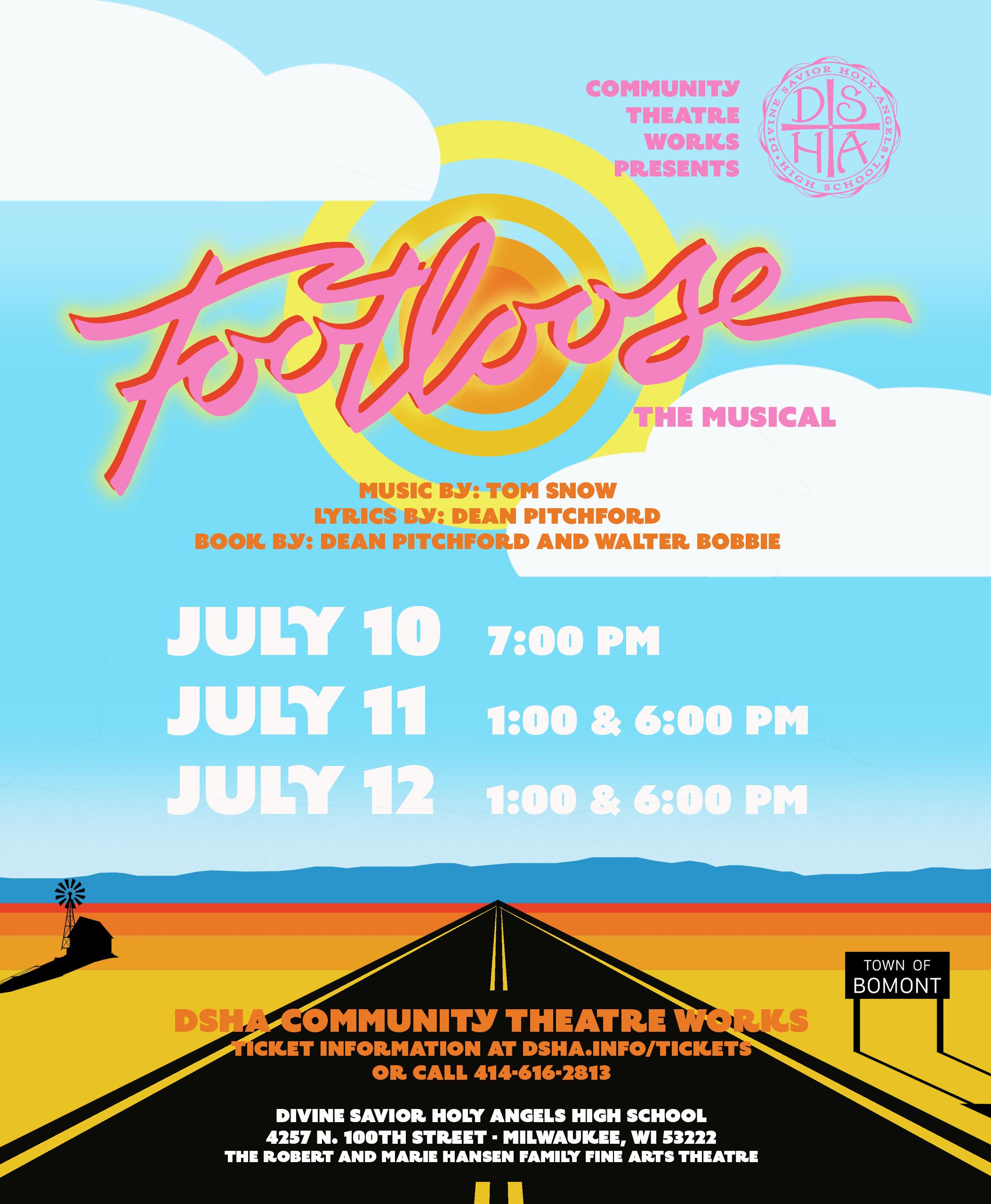 This summer, DSHA invites students (girls and boys!) in rising grades 5-12, as well as adults, to sing, dance, and shine in Community Theatre Works production of Footloose the Musical.