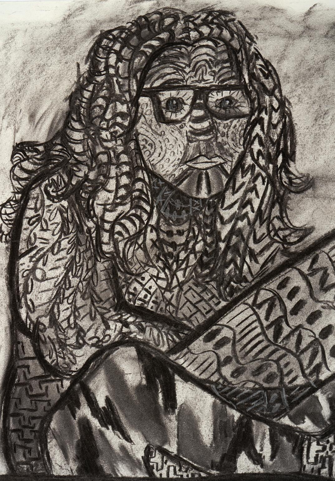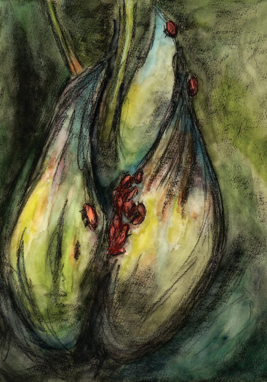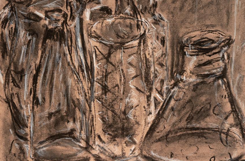A Weedy Congregation. Charcoal and watercolor on paper. 15”