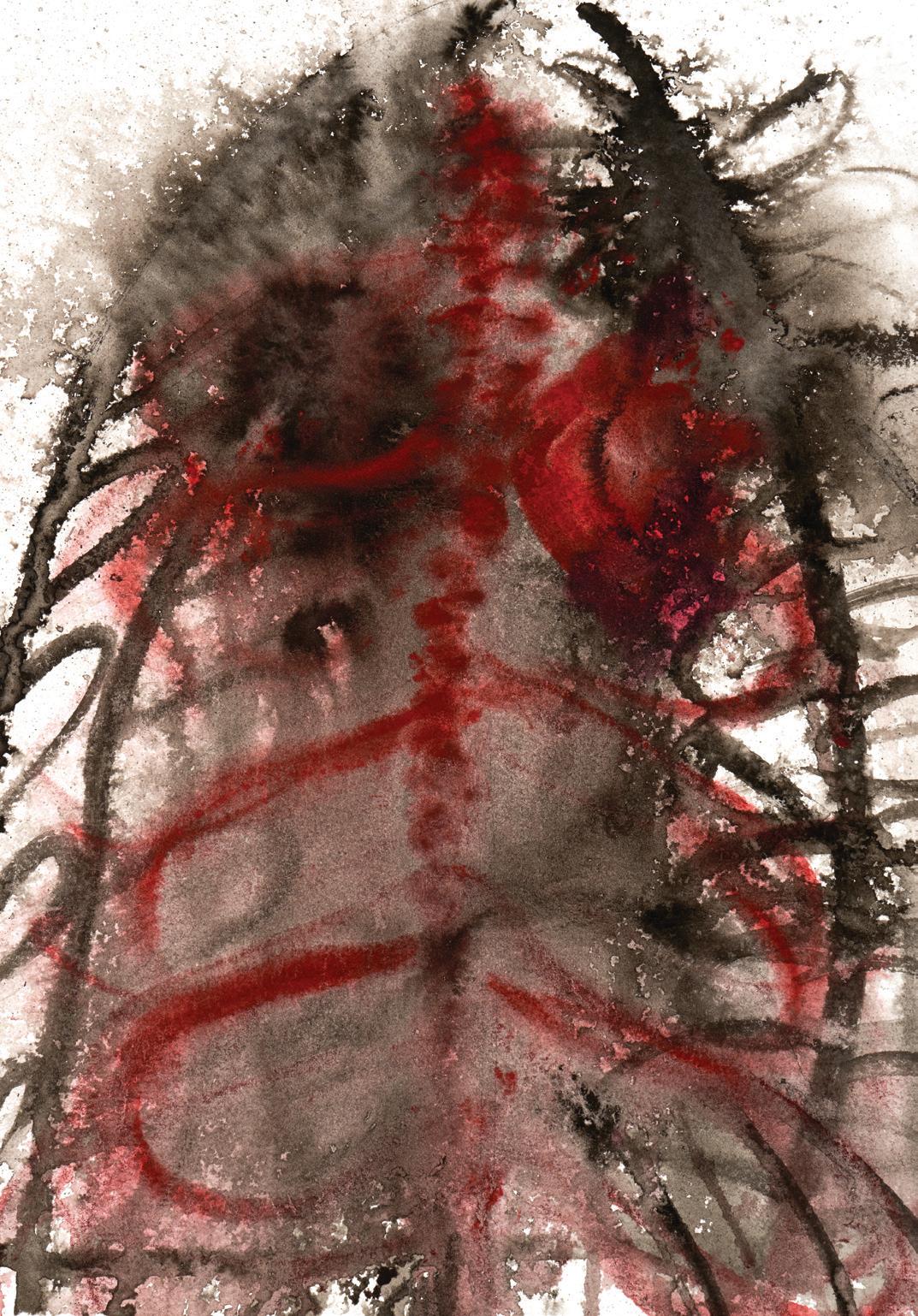 It Still Beats. India ink and acrylic on paper. 9” x 11”