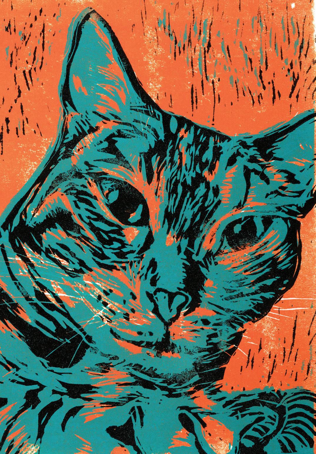 I Just Want Snuggles. Reduction print on paper. 8” x 10”