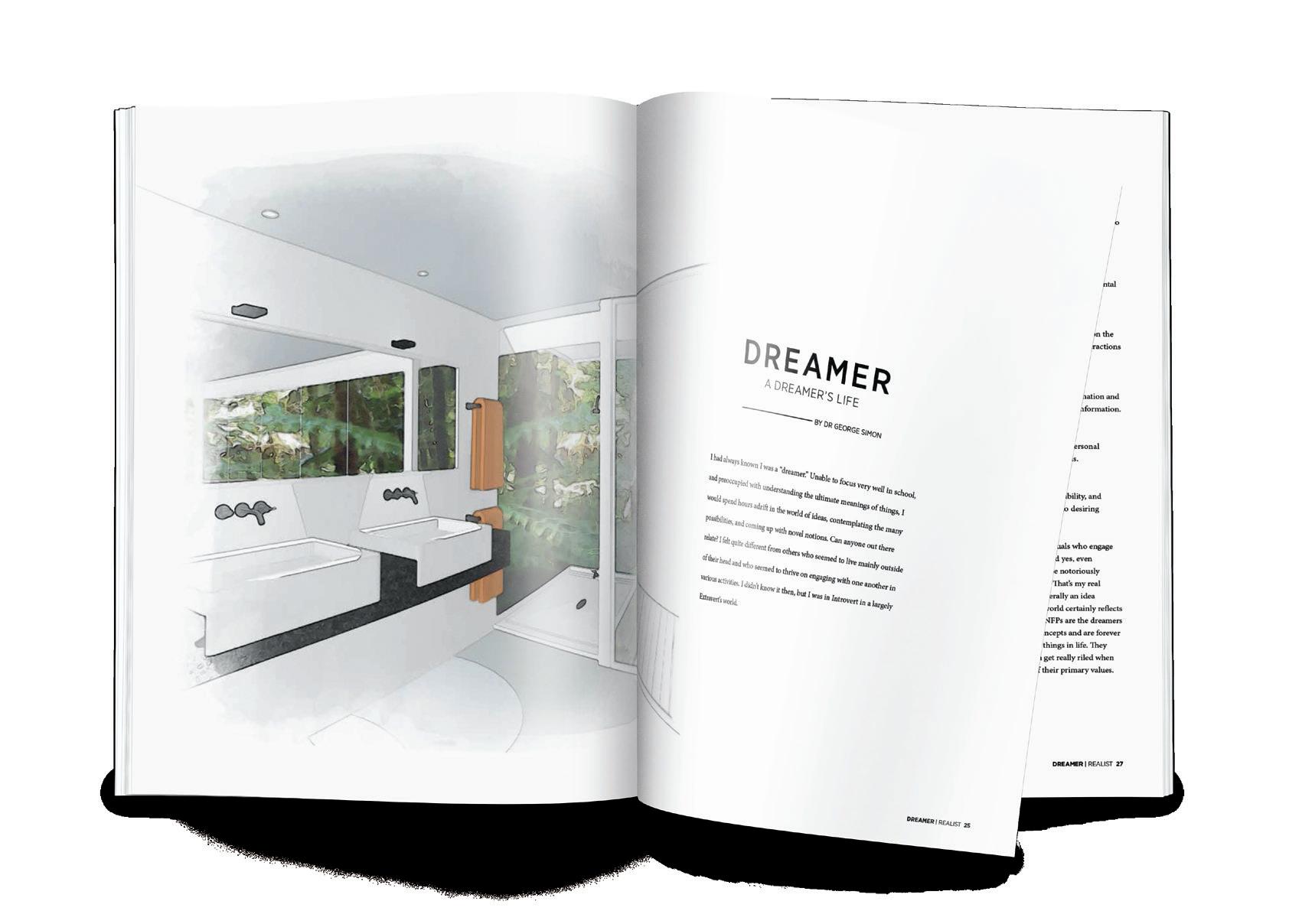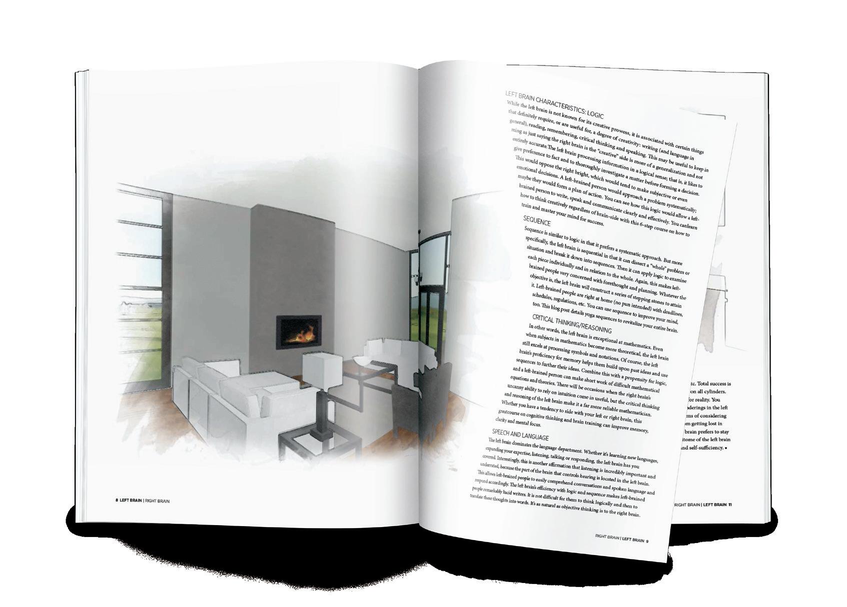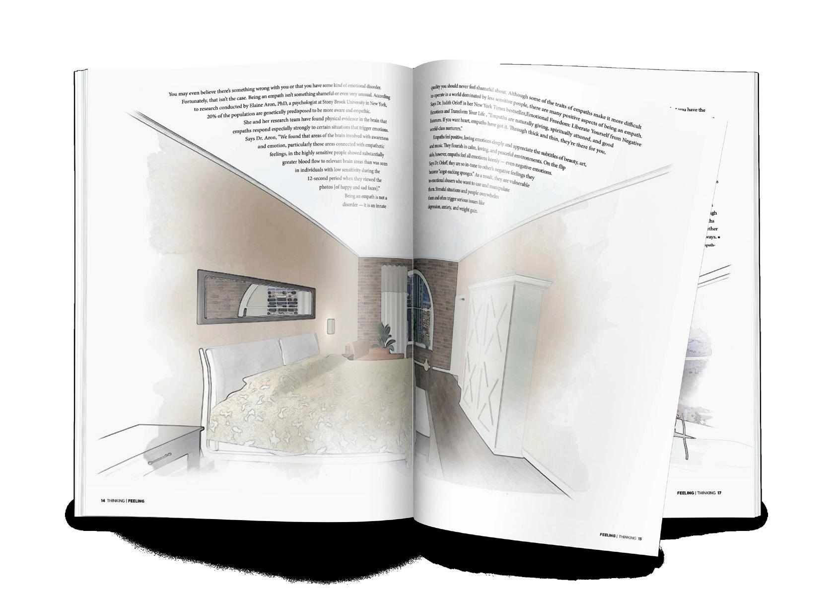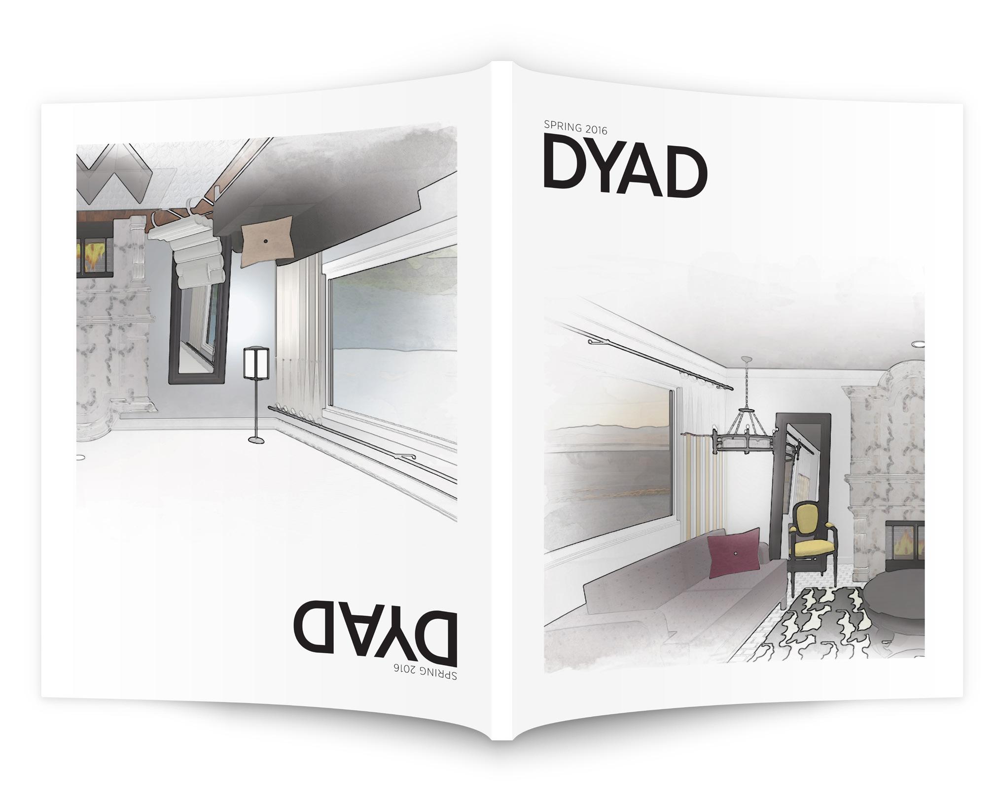 This 60 page publication explores contrasting personality traits within myself, expressed visually through interior design. Titled Dyad, the magazine has two front covers, and flips upside down, beginning the second magazine in the middle of the publication. The spaces were digitally designed, watercolored, and then complied into a magazine.