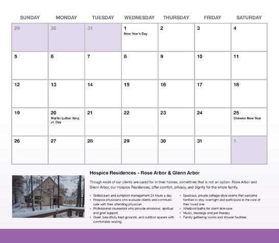 I made each month focus on a different event or program, using a large main image, a description and a call to action at the bottom.