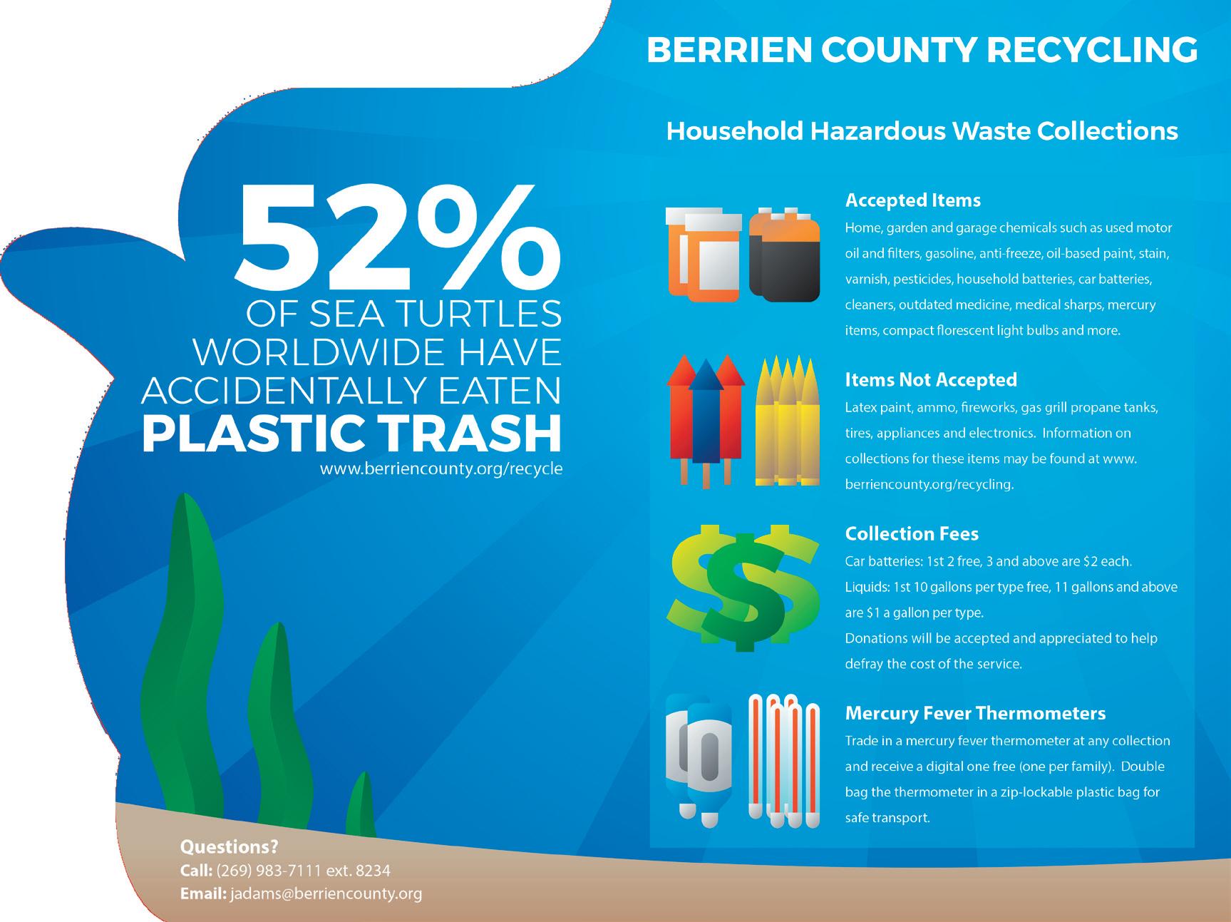 Berrien County Recycling sends out informational flyers to it’s residents to let them know how to recycle hazardous waste and other recycleables.