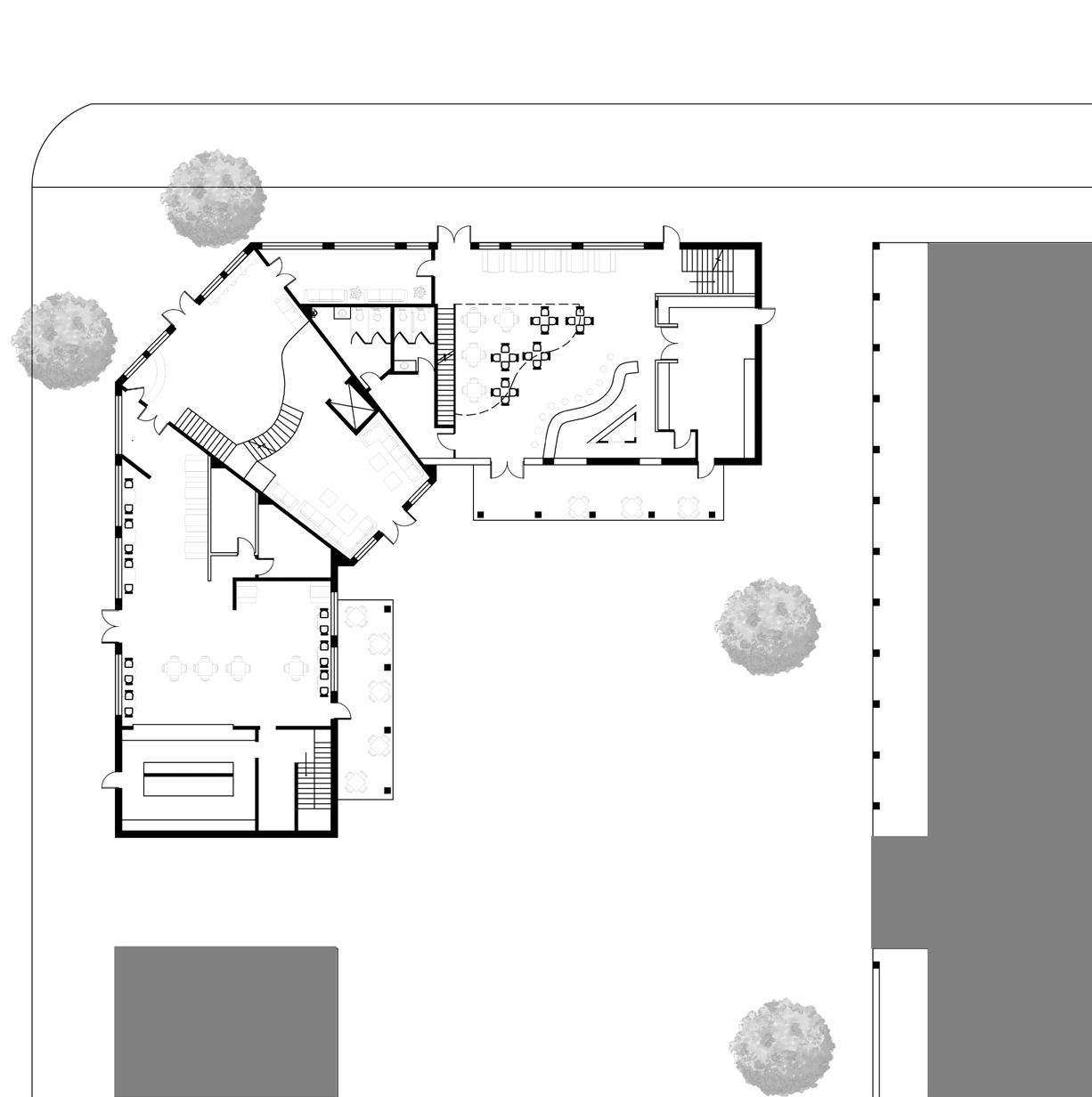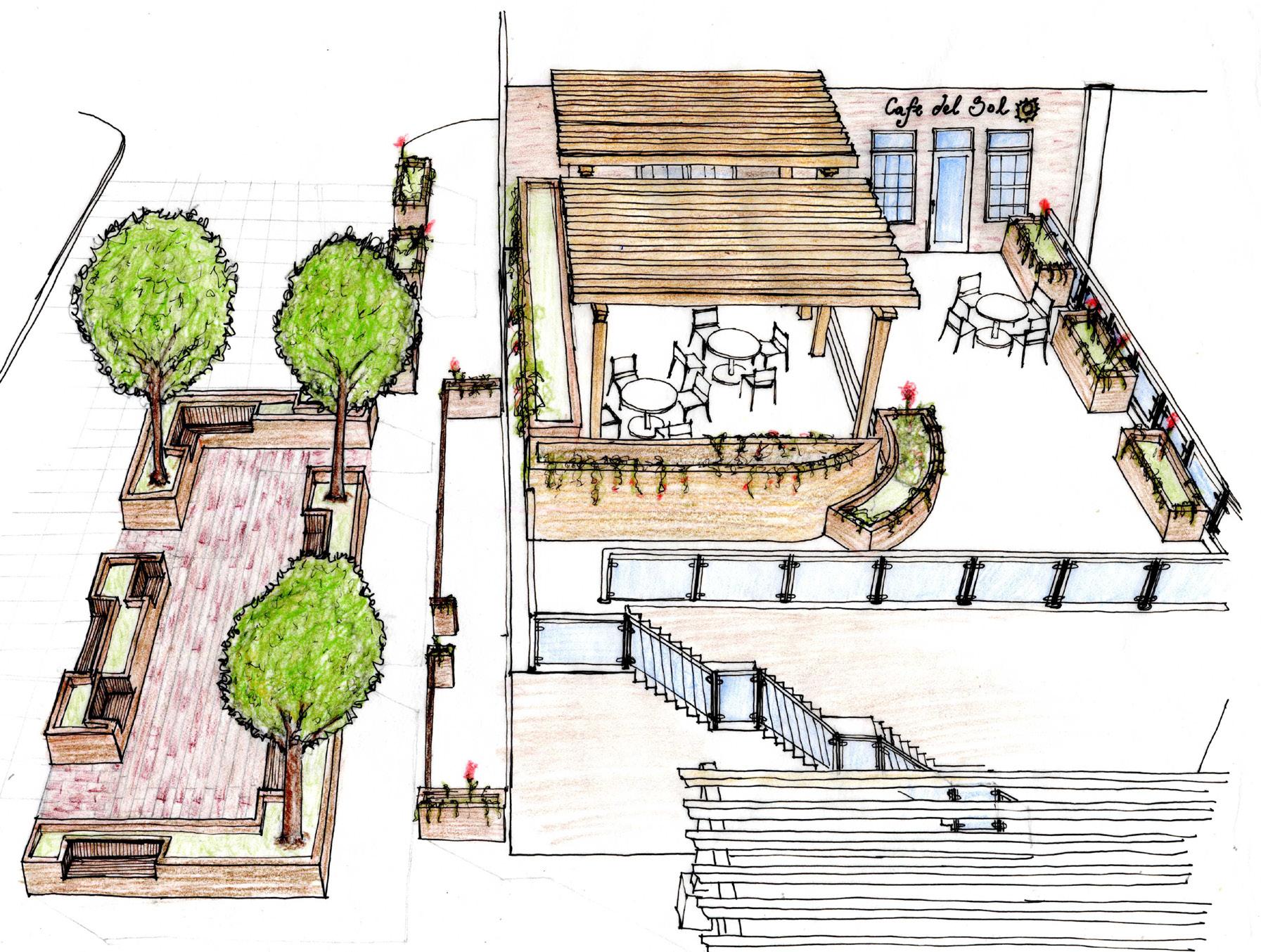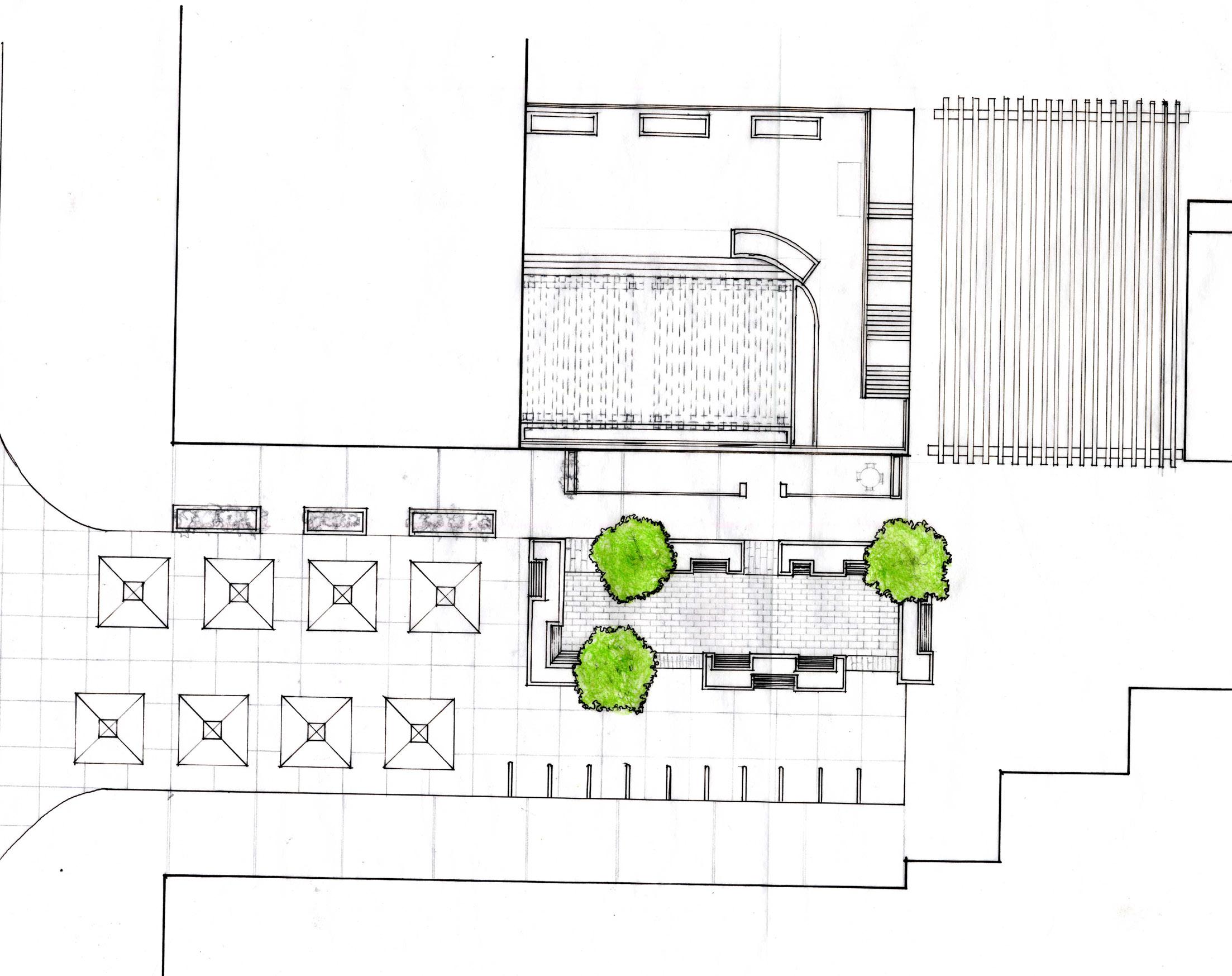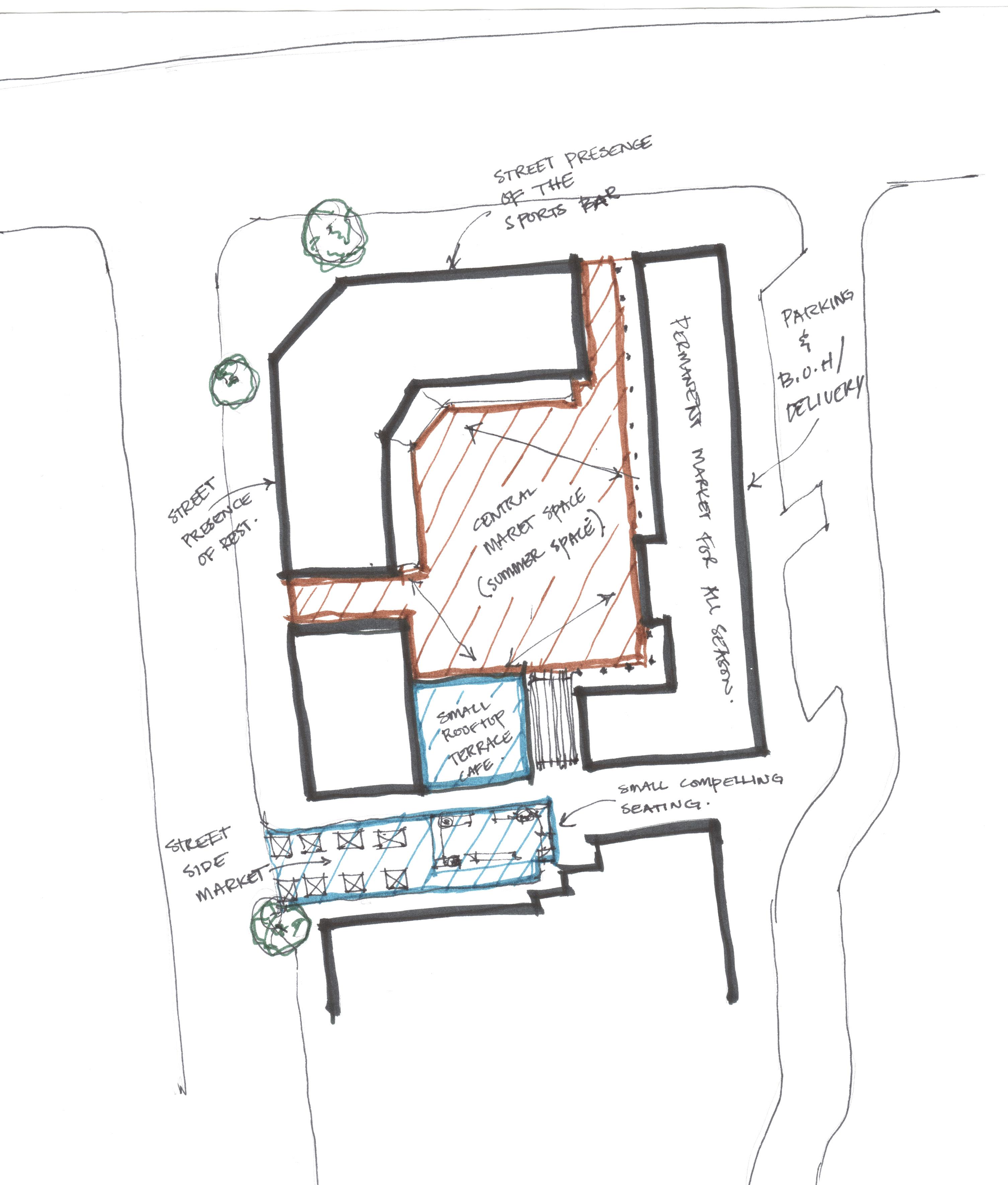 The restaurant will feature fresh food, grown by local farmers, as a way to tie into and promote local farmers market. This will be a place for fine dining, or quick lunch hour stops. It will provide upstairs and downstairs outdoor seating area, with excellent views into the quad and to the streets.