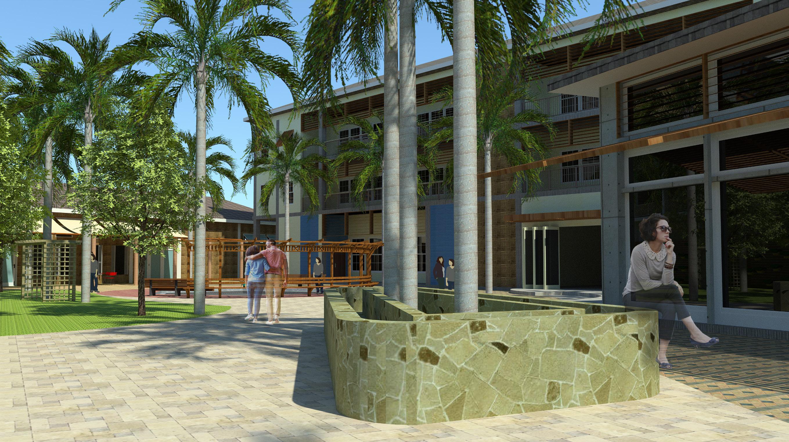 The Courtyard, being the main “room” of the development, is surrounded by all the elements of the project’s program. With the cultural context of Cayman in the forefront of the design, the “Porch” was a very important feature. Taking precedence from traditional Caymanian architecture - often including sizable porches - it was very important to accentuate the entrance into the main courtyard space. This porch nuance found its way into the design of the Gallery. Light and airy, it would serve as a visual connection in to the space, while displaying local Caymanian Art and Display pieces.