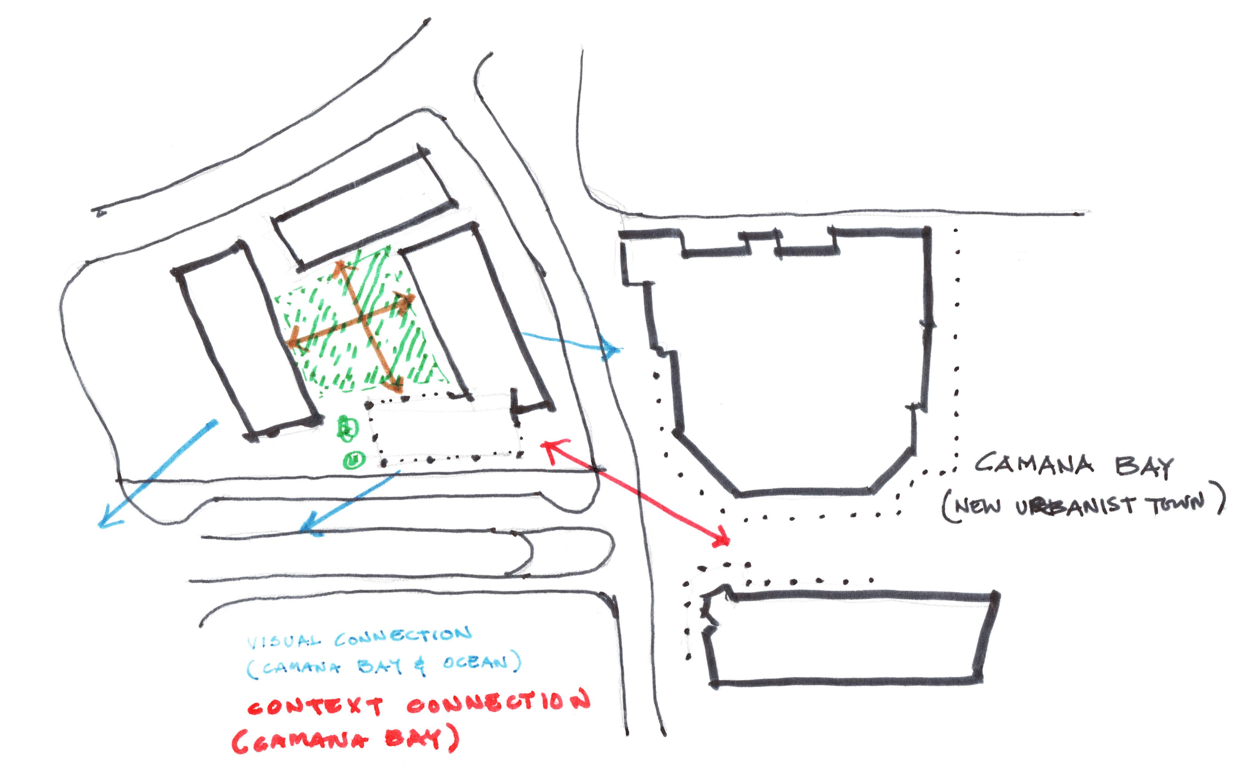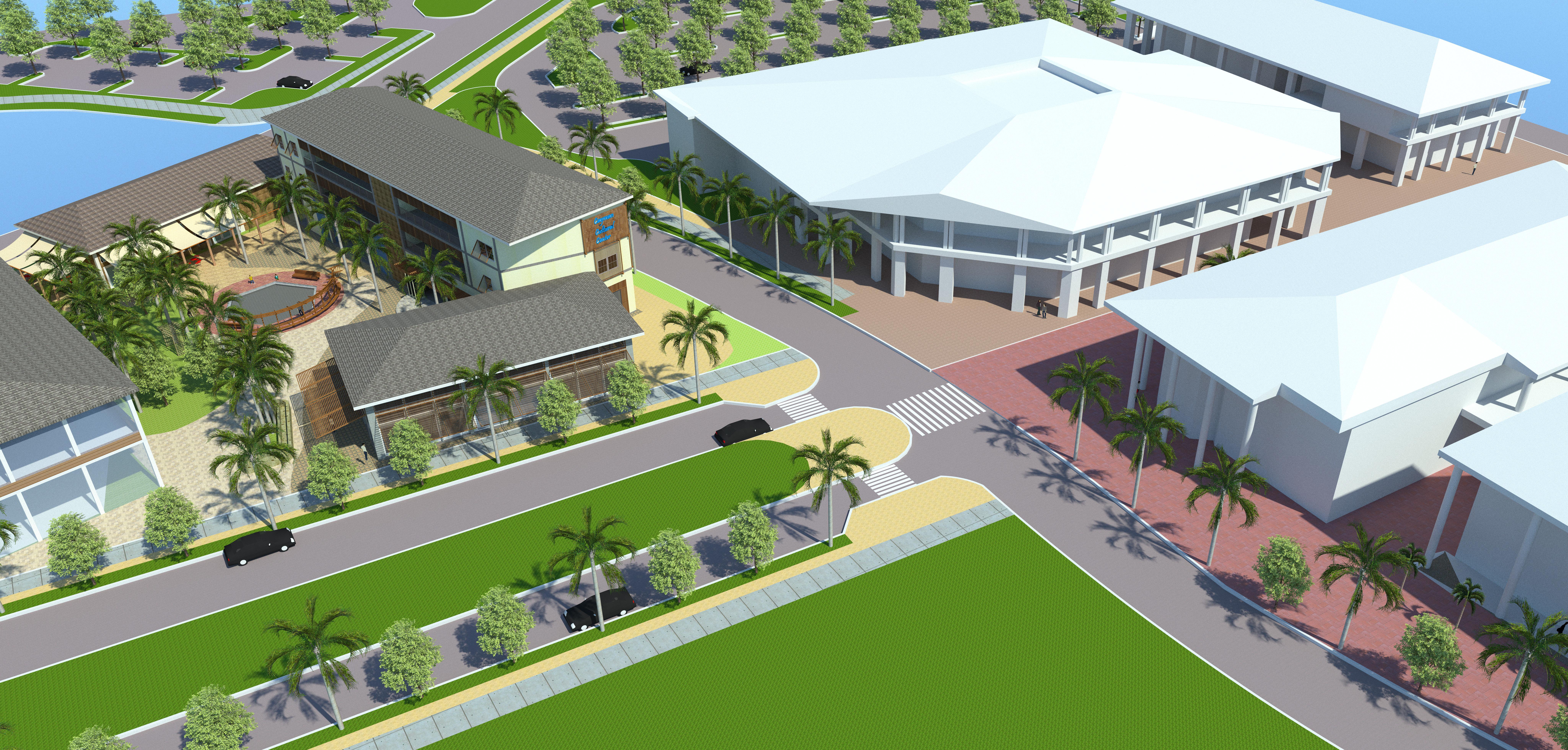 The site is within the context of the Camana Bay Town Center a very vibrant and well populated New Urbanist town, located in the center of Grand Cayman. Positioned on the most prominent axis - the Paseo - the site is in a very advantageous location to connect the Cultural Center to Camana Bay Town Center.