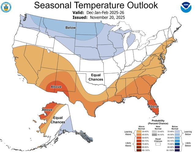 Much like last year, a slow developing La Niña will impact conditions for the coming winter. In the PNW, this usually means wetter-than-average and colder-than-average conditions with a more northerly storm track. NOAA models for the three-month outlook from December through February predict that we will see slightly lower seasonal temperatures than normal and precipitation that is above average (graphic below).