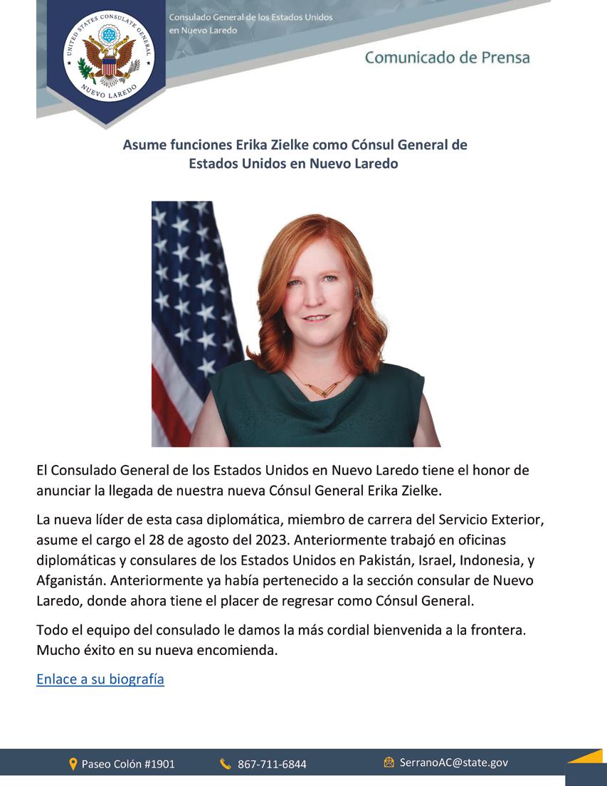 Erika Zielke nueva Cónsul General de Estados Unidos en Nuevo Laredo