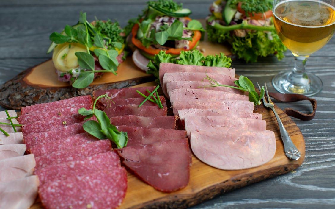 udskæringer – du kan også hente inspiration til det fulde måltid. For selvfølgelig skal det være en helhedsoplevelse at gå til slagteren. I nutidens slagterbutikker handler det nemlig om meget mere end blot at skære det ferske kød ud. Butikkerne er tilpasset kundernes behov, og sortimentet indeholder meget andet end fersk kød og pølser. Her præsenteres lette frokostløsninger, og der er altid spændende inspiration til aftensmåltidet samtidig med, at delikatessen er fyldt med lokkende varer.