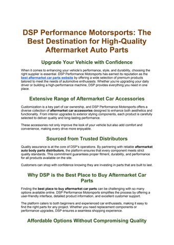 Replace or upgrade your vehicle's exterior with durable aftermarket auto body parts from DSP Performance Motorsports. Our inventory includes bumpers, hoods, and fenders designed to fit seamlessly and improve your car's appearance and aerodynamics.β