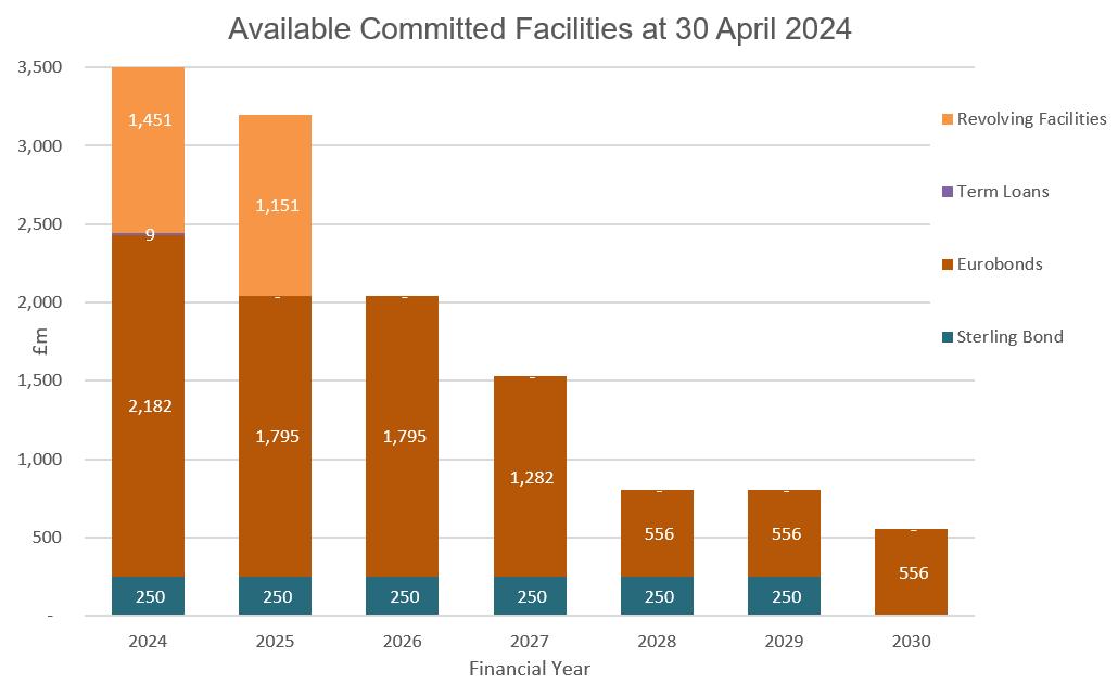 As at 30 April 2024, the weighted average remaining life of the Group’s committed borrowing was 2.68 years. Debt shown net of swaps.