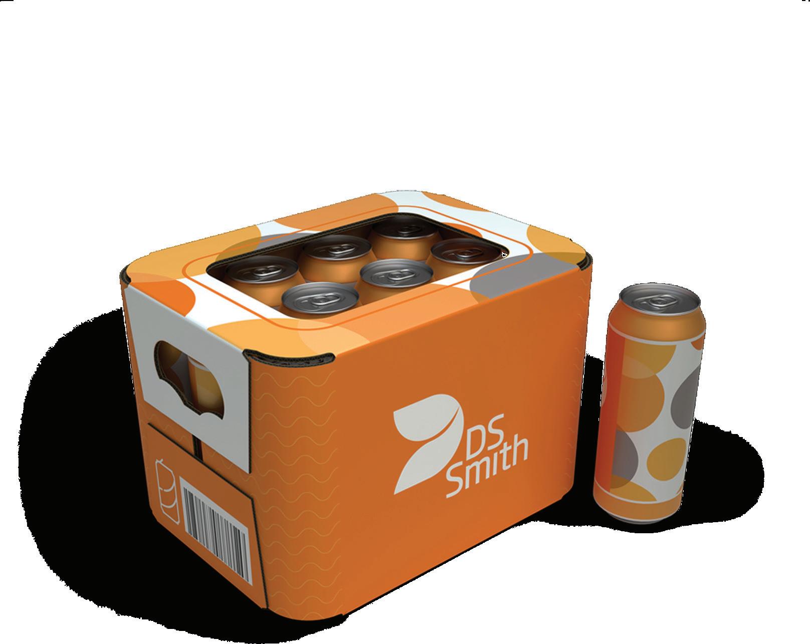 DS Smith Round Wrap signi cantly reduces CO2* emissions when compared to standard corrugated multi-pack wraps (up to 24% reduction with a 4 x 50ml cans pack) . It is produced using renewable materials and is fully recyclable**. It is also possible to include design features for returning empties for re lling. The curved corners could reduce the use of shrink lm by up to 20%***.