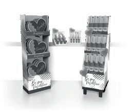 Robust displays that are designed for easy setting up instore. Pops up in a few seconds with products visible to the shopper from all angles.