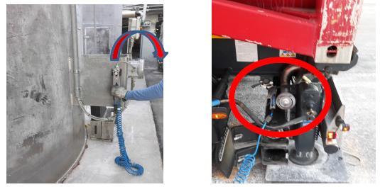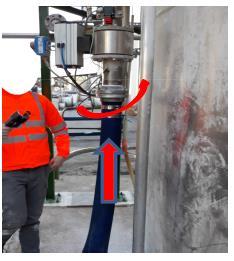 Pagina 5 di 11 check correct connection of the discharge hose to the silo Der korrekte Anschluss des Entladungsschlauches ermöglicht das Öffnen des Ventils (siehe Foto) Öffnet das Ventil nicht, Schlauchverbindung prüfen, Laborpersonal anrufen +39 0583296641 Der Fahrer kontrolliert am Manometer, dass beim Entladen der Druck von 0,8 bar nicht überschritten wird. 8 7 Stärke in das Silo entladen Ambito Qualità DS Smith – INTERNAL