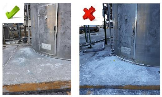 Pagina 8 di 11 Der Fahrer stellt die Sauberkeit des Bereichs wieder her, indem er gegebenenfalls den Bereich reinigt (siehe richtiges und falsches Standardfoto) Signal minimaler Silofüllstand (rotes Licht auf dem Display) Besonderes Entladeverfahren Beim Beladen in ein Silo mit minimalem Füllstand müssen zusätzlich zu den oben genannten Vorsichtsmaßnahmen folgende zusätzliche Maßnahmen getroffen werden: 10 Ambito Qualità DS Smith – INTERNAL