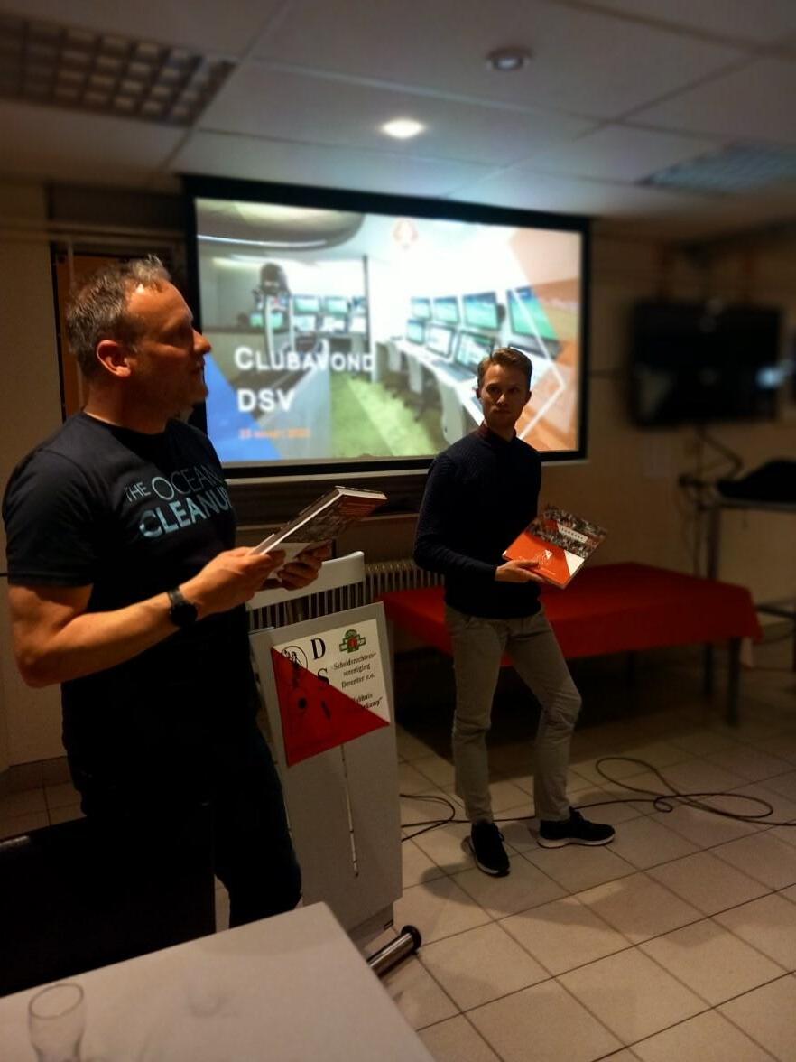 Rond de klok van 22.15 uur bedankte voorzitter Peter Stolk beide sprekers en overhandigde hen het Jubileumboek van de DSV.