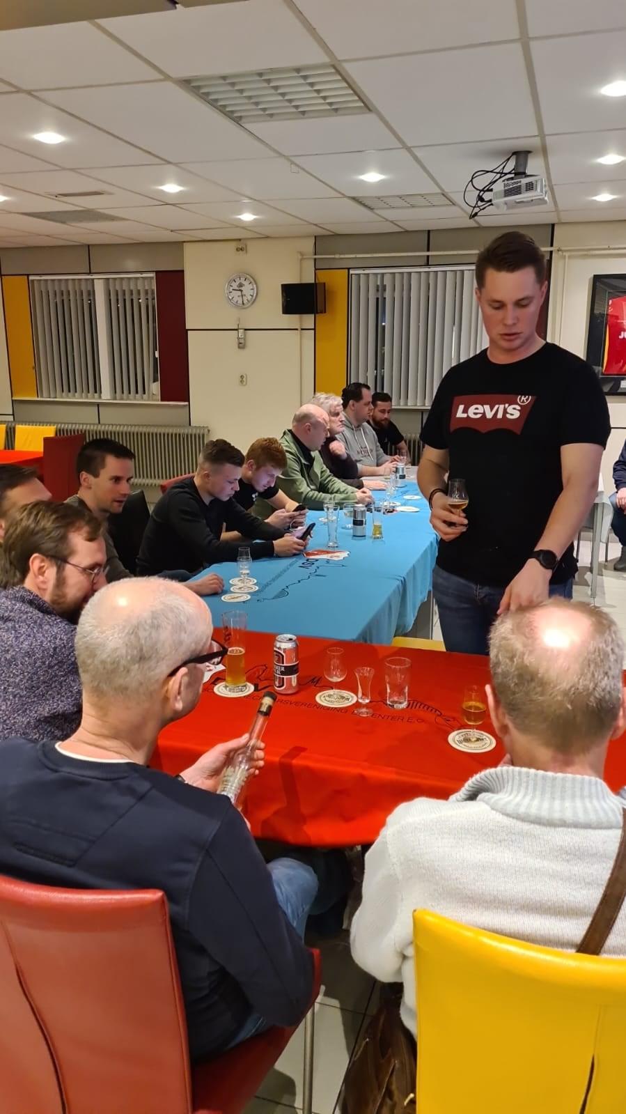 Daarnaast hadden de heren bij elkbiertje eenbijpassend hapje. Hetging van kaas tot warme hap, en zelfs de tiramisu kwam op tafel. We zaten metzeventien DSV-ledenaan tafel en er werd genoten van het eten en drinken en uiteraard veel gelachen. Hetwas een topavond, voor herhaling vatbaar.