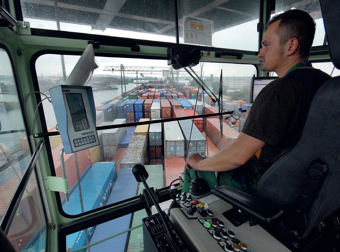 gungen und Schleusen, damit die Schiffe immer freie Fahrt haben. Wer keine Höhenangst und viel Fingerspitzengefühl hat, kann im Dortmunder Hafen als Portalkranführer arbeiten und ankom-
