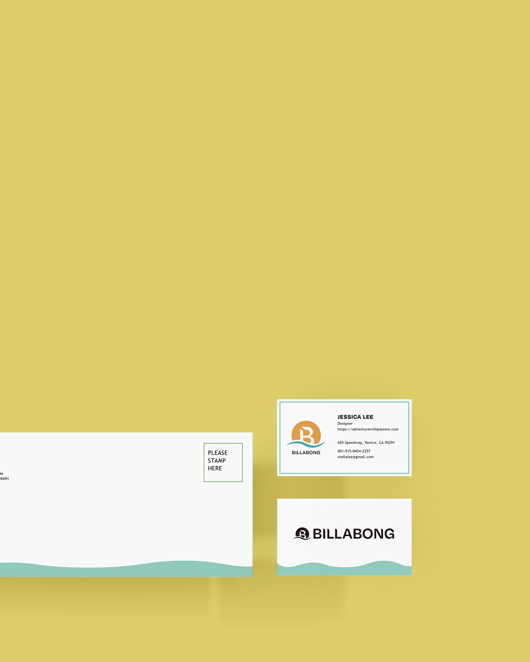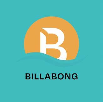 The logo is linked to the brand mission. The wavy lines at the bottom represent natural features such as ocean waves and rolling hills. The letter B above is the initials of the brand BILLABONG. A curved opening in the upper left corner of the letter B represents exploration, passion and joy. Because the brand originated from the story of surfing by the sea and the brand is closely related to nature, I chose blue and orange as the color scheme. It means the sun rising from the sea.