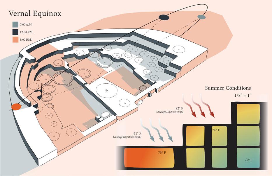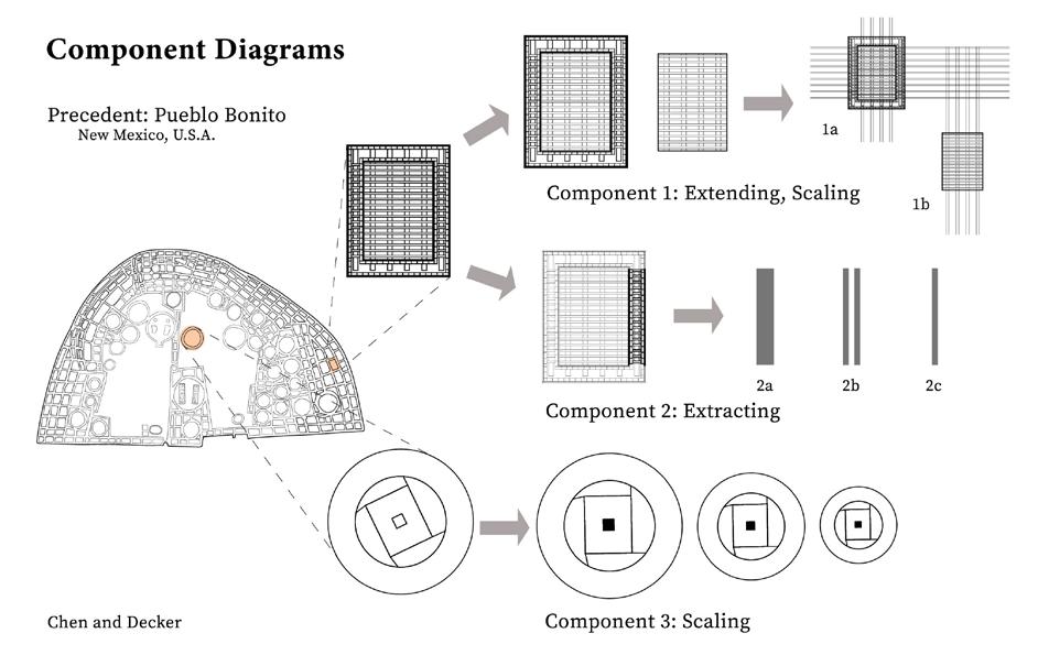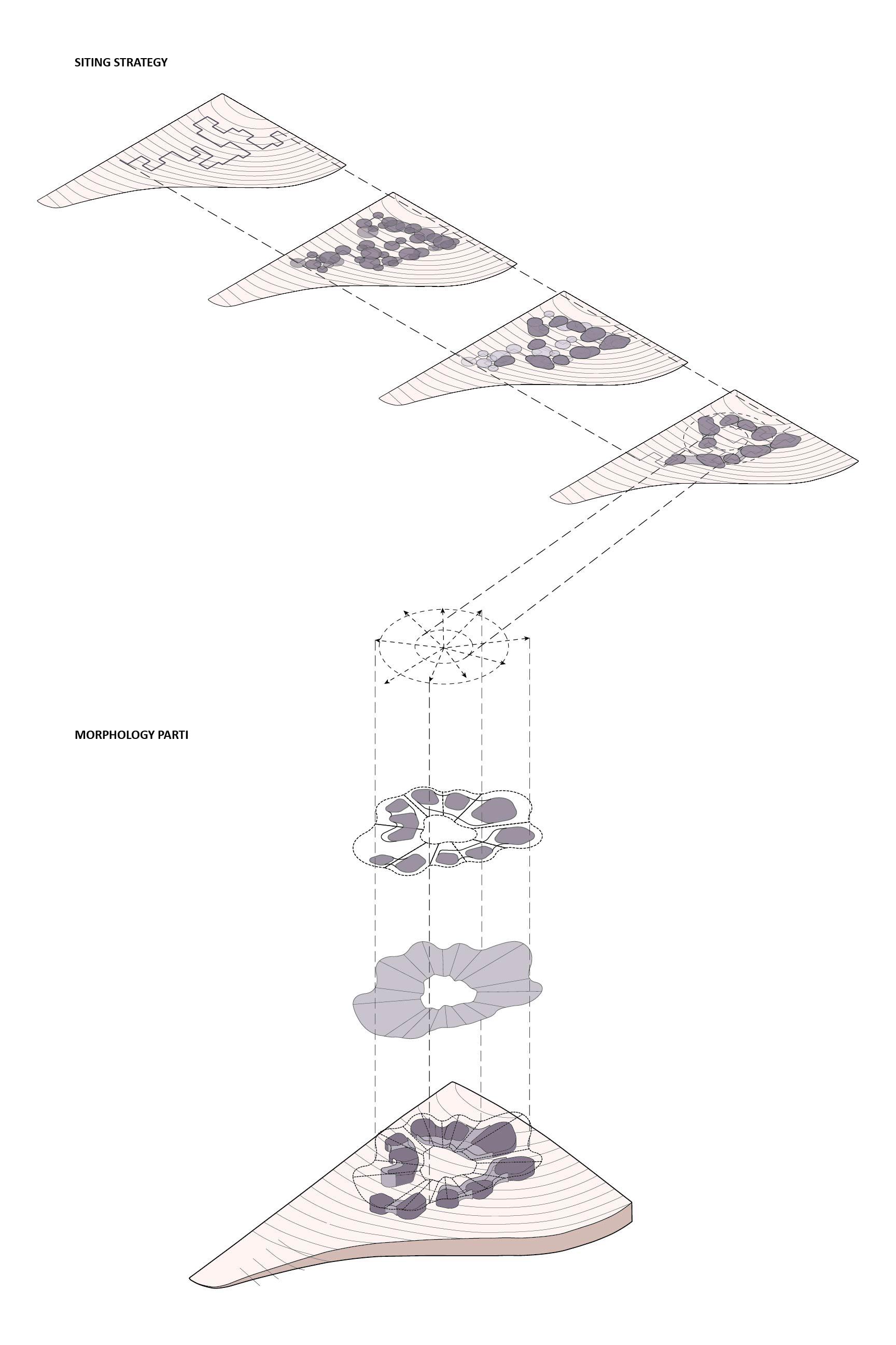 During this collaborative, 12-week project, my partner and I proposed Farmers | Market as a dynamic culinary institute for the synthesis of food production with the knowledge and technology of the community. We were first tasked with deriving a morphology based off the philosophies of chefs Dominique Crenn and Grant Achatz, in addition to a desert-biome precedent study and subsequent field drawing and model. The teachings from our chefs and from the Pueblo Bonito in New Mexico stressed the importance of a circular organization for community programs, both in their spatial layout and the overall material design.