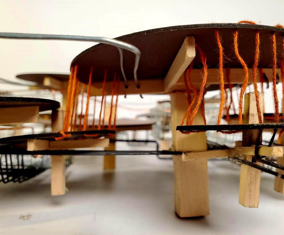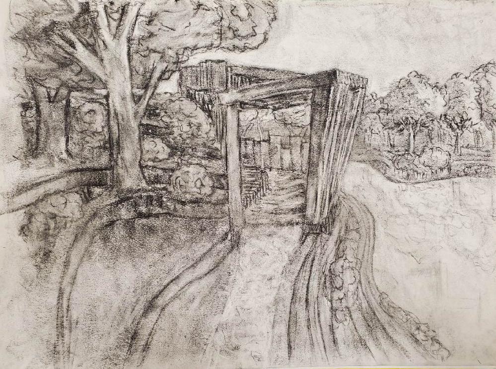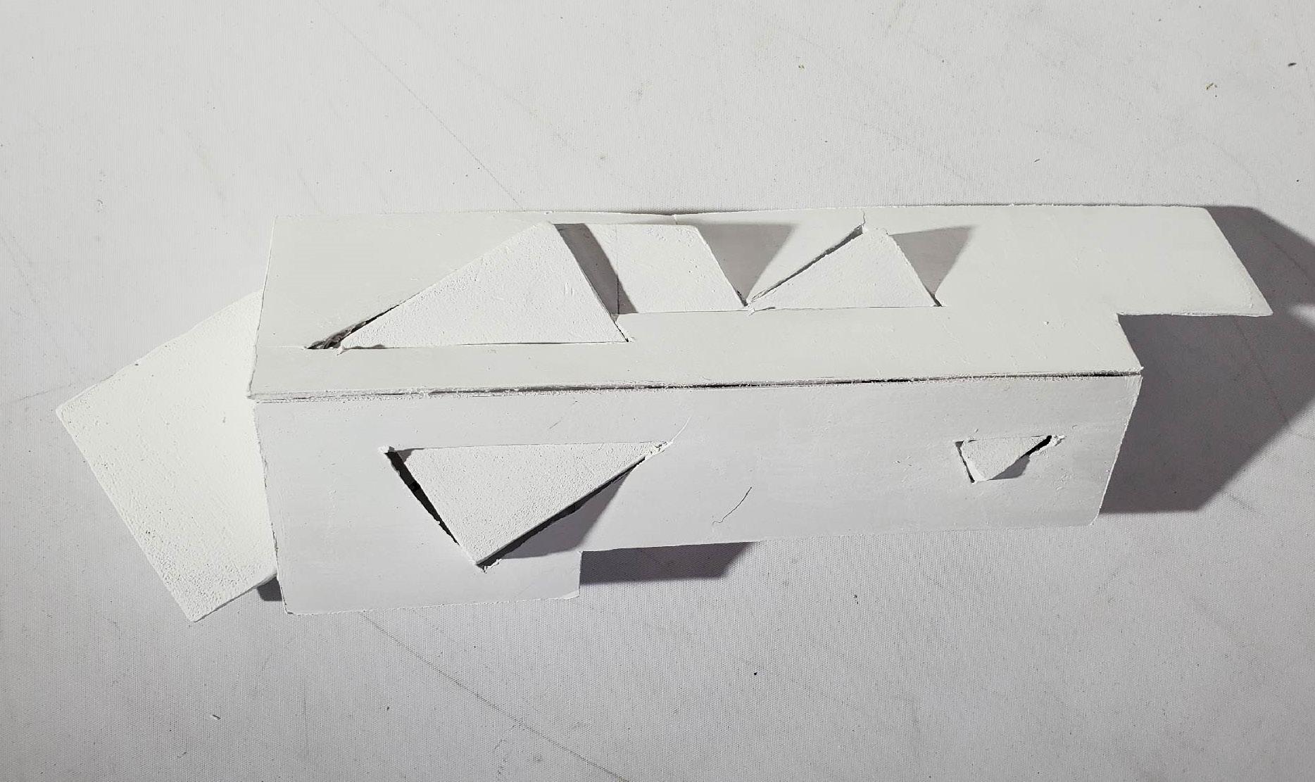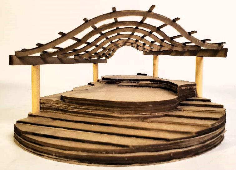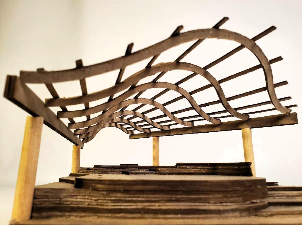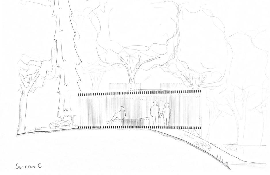 As the culmination of my first studio, this project practiced fundamental design and representation skills through a pavilion intervention in a chosen landscape. This pavilion had to present two separate moments of rest while staying confined in a small footprint to minimize environmental effects. Working only in hand drafting, analog drawing, and physical modeling, I had to define the structural tectonics through dimensional lumber and illustrate its human experience.
