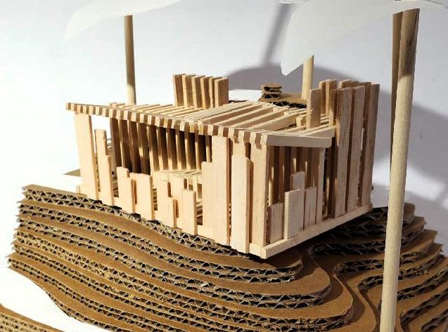As the culmination of my first studio, this project practiced fundamental design and representation skills through a pavilion intervention in a chosen landscape. This pavilion had to present two separate moments of rest while staying confined in a small footprint to minimize environmental effects. Working only in hand drafting, analog drawing, and physical modeling, I had to define the structural tectonics through dimensional lumber and illustrate its human experience.