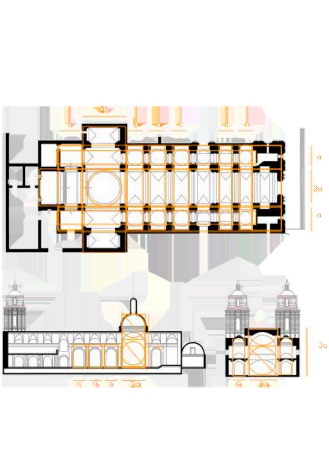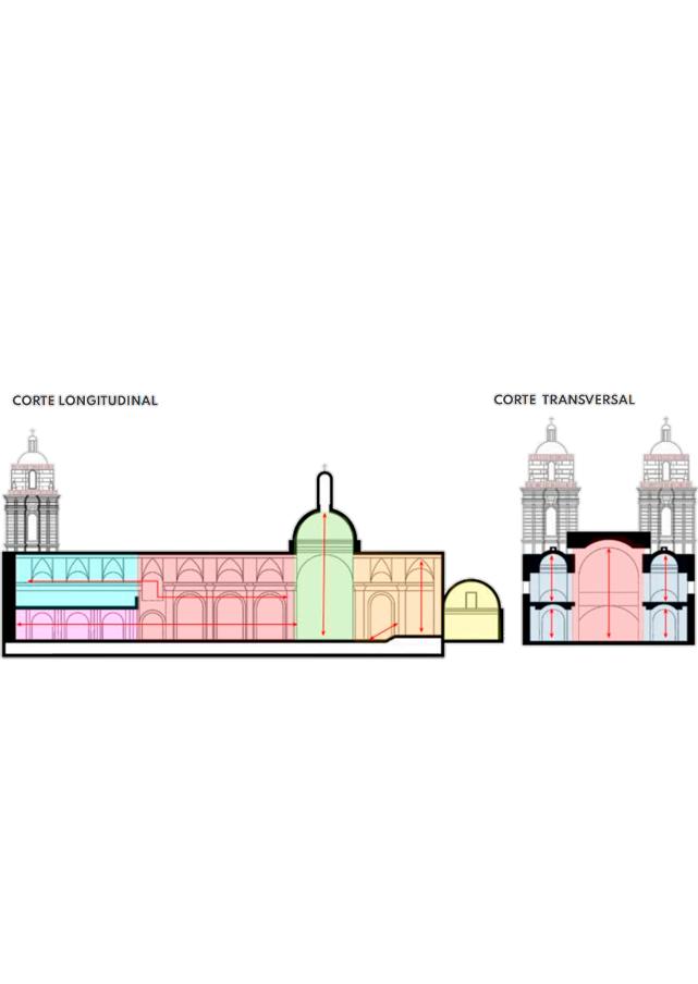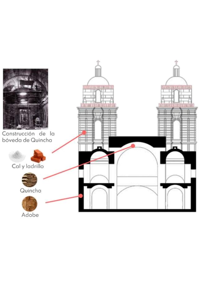 El diseño en planta también se ve influenciado por la robustez y solidez del Románico, manifestado en los gruesos muros y contrafuertes que refuerzan la estructura y otorgan una sensación de estabilidad. A su vez, las bóvedas de crucería que se encuentran en la nave central evocan la herencia gótica, un estilo que, aunque atenuado en su verticalidad extrema en el caso limeño, sigue presente en la manera en que los elementos estructurales y decorativos tienden a elevar la experiencia visual.