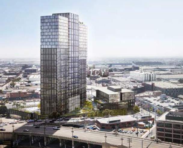 The first high-rise development in the Arts District will feature 475 apartments and over 100K SF of office space.