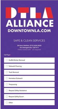 In addition to using our Safe & Clean app or our 24-hour hotline, service requests can now be submitted directly through our website to access services in the Downtown Center district. This new option provides our community with a quick way to report graffiti, trash, or safety concerns; request a safety escort; or connect unhoused individuals with outreach services.