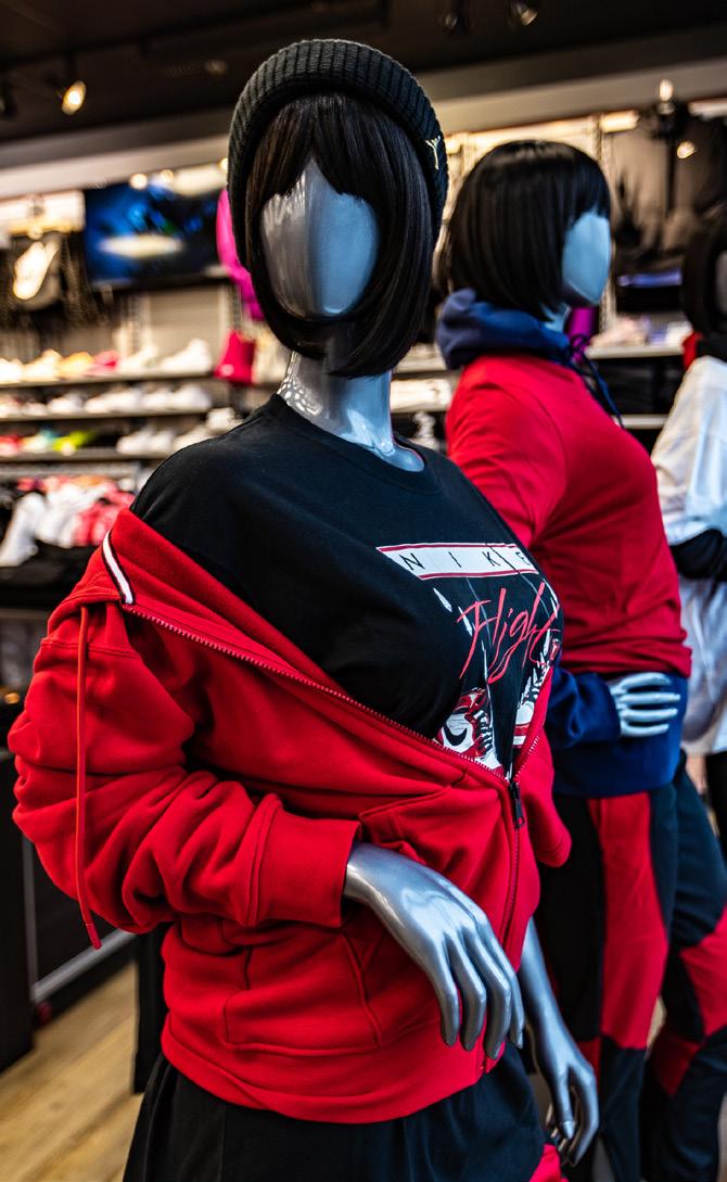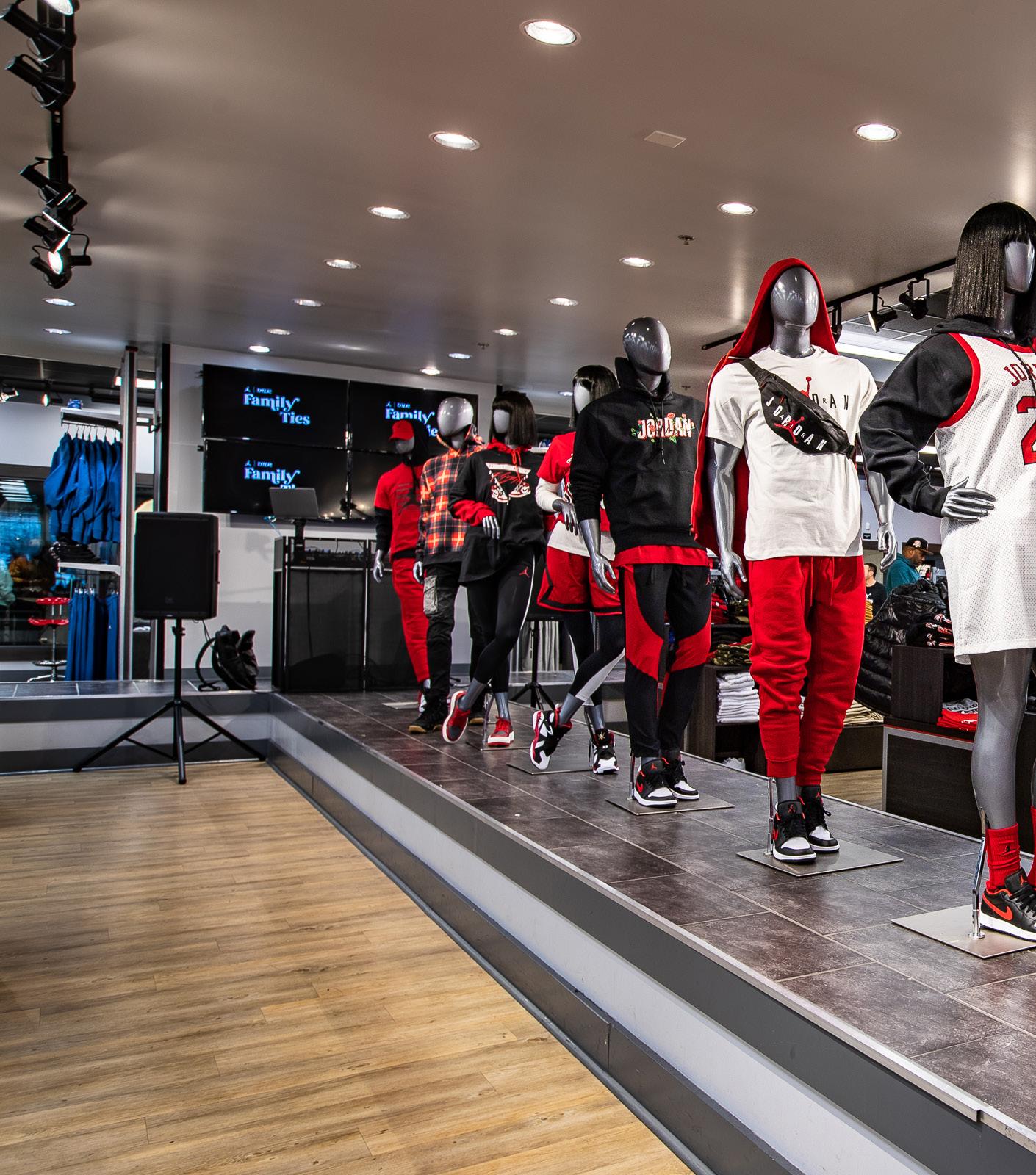 JORDAN BRAND MERCHANDISE WAS FEATURED IN THE WINDOWS, THE RUNWAY, AND FOUR MAJOR CORNERS OF THE STORE.