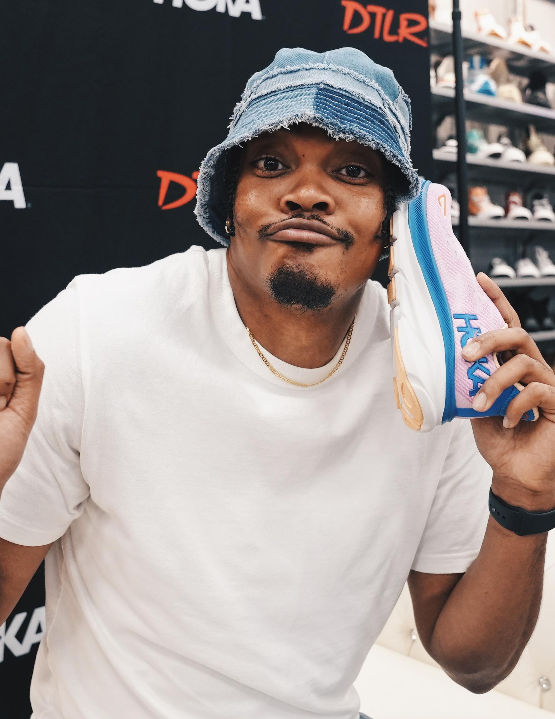 Hoka footwear is now available in select DTLR stores and we’re hyped about it! To close out July, we hosted a “Hooked On Hoka” weekend where at select stores we set up a Hoka try-on station where customers could try on pairs of Hoka and win free prizes. DTLR Radio’s own Kyle On The Mic handled the hosting duties in Maryland alongside DJ’s Twisted and Scottie B. The customers were excited to try on the (extremely) comfy new kicks and leave with some fresh gear and cool giveaways.