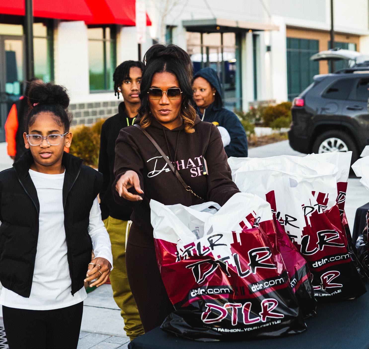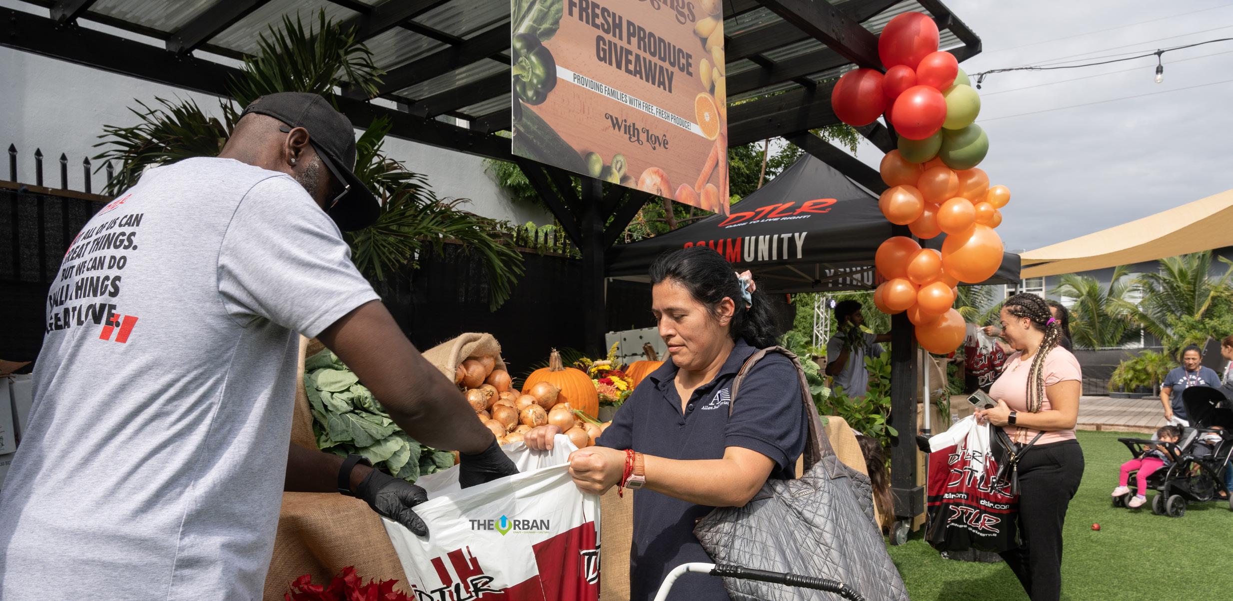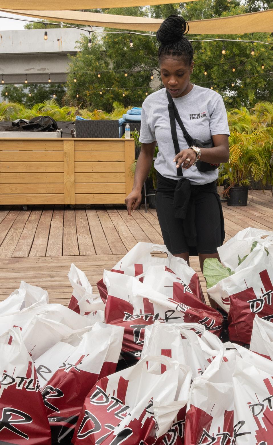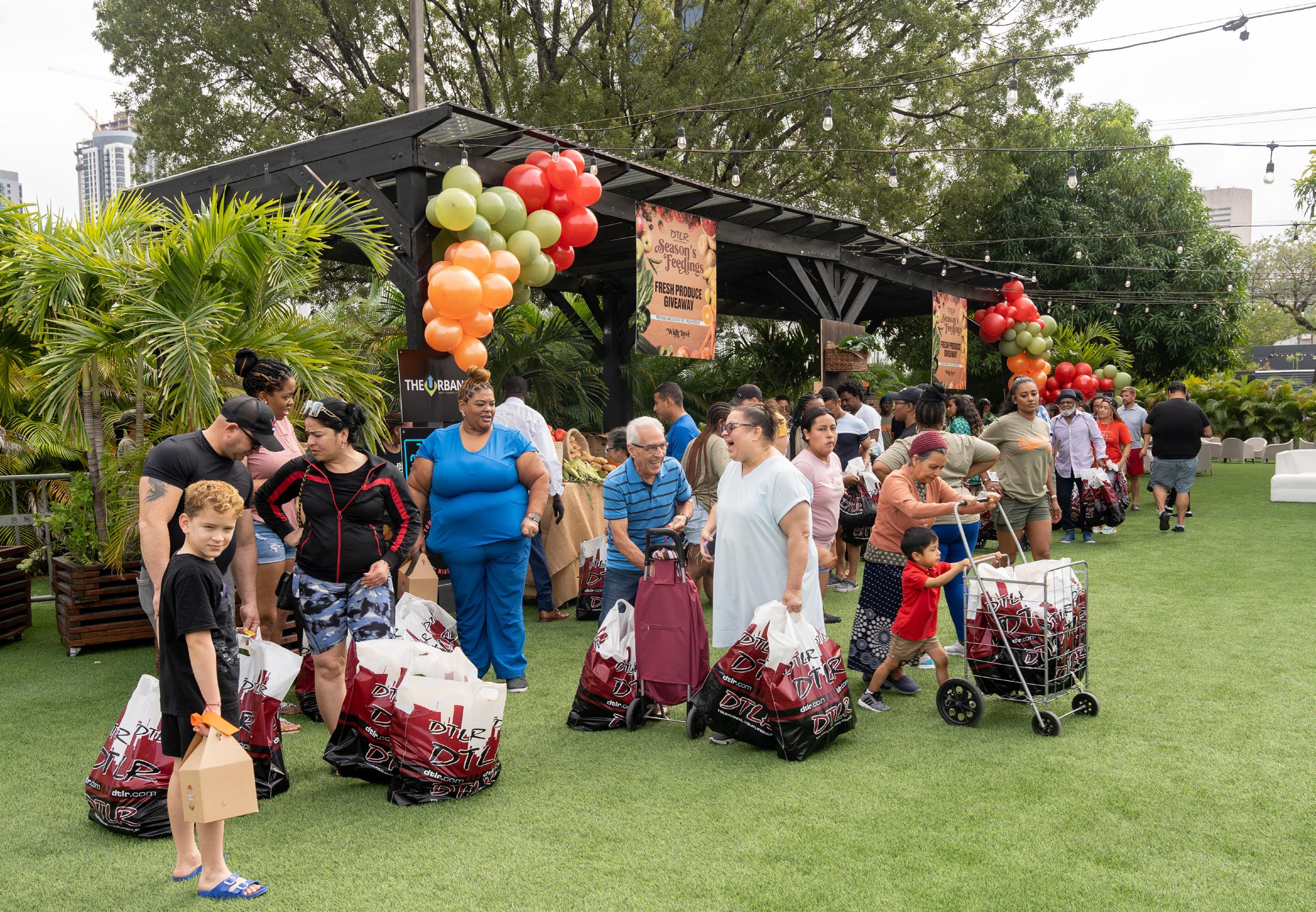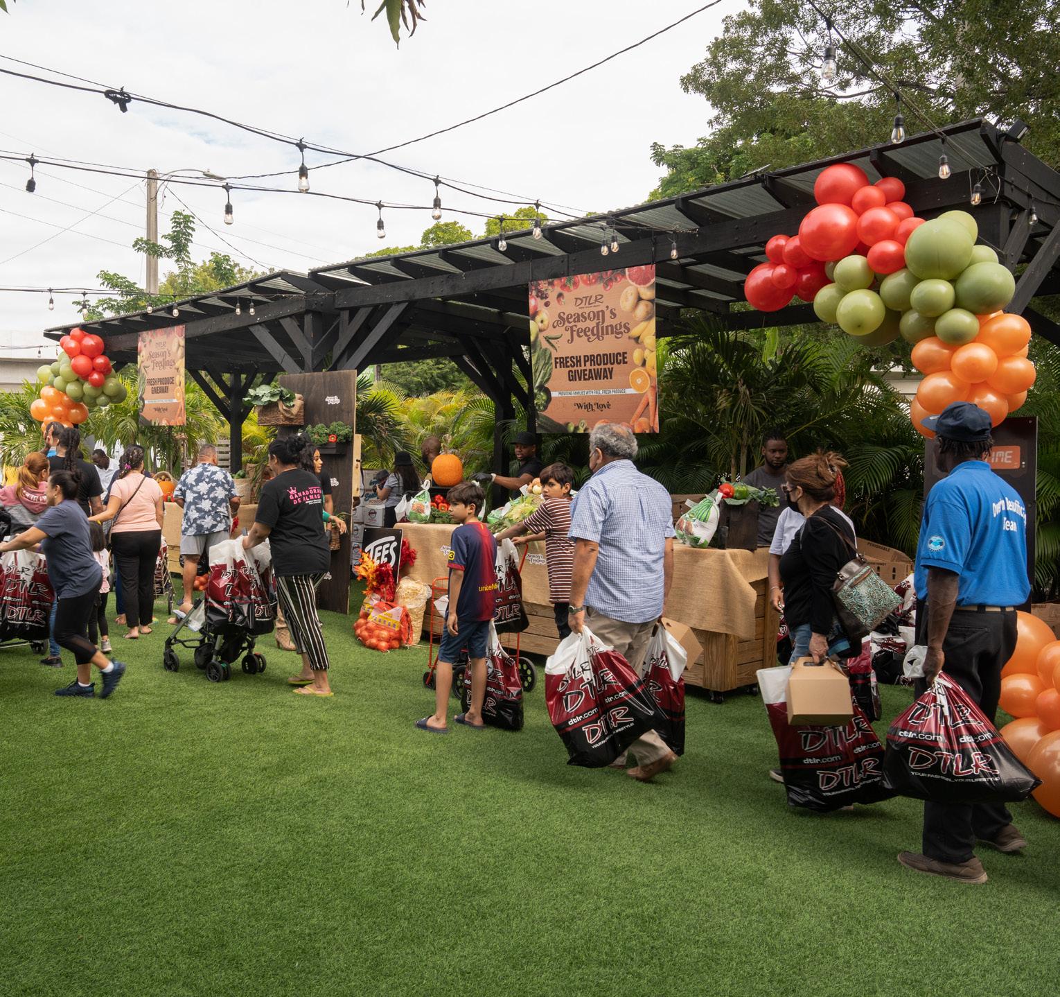 At the small enclosed, outdoor garden, The Urban, located in Overtown, Miami, DTLR joined forces with one of its long-standing local community partners, TEES Youth to bring the community the 3rd Annual Season’s Feedings. With over 20,000 pounds of fresh produce, 250 boxed hot lunches and 150 turkeys, we were able to feed over 600 families. Purple Leaf experience provided the ambiance engulfed in the tones of harvest. Greens, oranges, yellows, and browns enticed the venue providing a welcome home feel for attendees. A long dinner table sat in the center of the space for individuals to sit and enjoy their hot lunch, surrounded by the loving energy of the volunteers and the sounds of family. Families of all backgrounds lined up an hour before doors opened to ensure they wouldn’t miss the vibes! Special thank you to 305 Films, House of Wings, Headliner, Tomorrowland, and all of our other community partners for joining us this year and we look forward to next year!