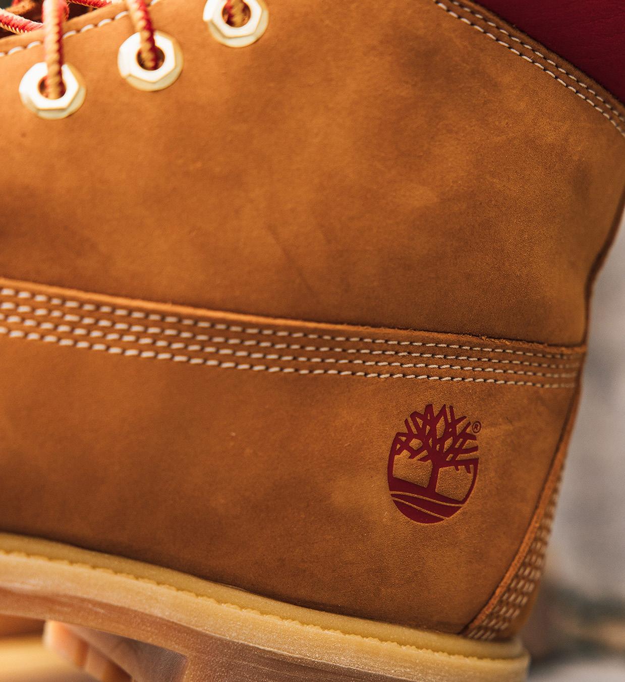 Initially launched to commemorate DTLR’s 30th anniversary a decade ago, this limitededition color-way boasts a premium full-grain nubuck upper done in Timberland’s classic wheat tone. The tonal base is accented with luxe red hits, which dress the laces and padded leather ankle collars. Embossed Timberland Tree logos appear on the lateral heels, completing the upper.